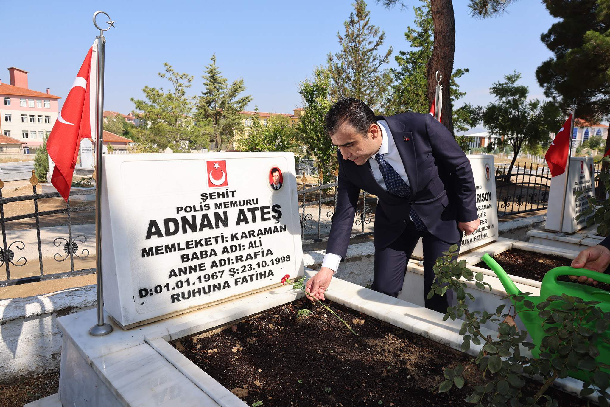 15 Temmuz Demokrasi ve Milli Birlik Günü programı; Karaman Valisi Hüseyin Engin Sarıibrahim, Karaman Belediye Başkanı Savaş Kalaycı, protokol üyeleri ve vatandaşların katıldığı Garnizon ve Polis Şehitliklerine düzenlenen ziyaretle başladı. Kur’an-ı Kerim okunması ve yapılan duaların ardından şehitlikteki kabirlere tek tek karanfil bırakıldı. Şehitlik ziyaretinin ardından 15 Temmuz gecesi şehadete yürüyen Karamanlı Şehit Muhammed Yalçın’ın Kâzımkarabekir ilçesindeki baba evi ziyaret edilerek, şehidin kabri başında dua edildi.