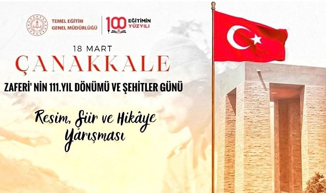 18 Mart Çanakkale Deniz Zaferi’nin 111. yıl dönümü ve Şehitleri Anma Günü dolayısıyla ortaokul öğrencileri arasında resim, şiir ve hikâye yarışması düzenlenecek. Yarışma, şehitleri anmak, Türk milletinin kahramanlık destanını gelecek nesillere aktarmak ve öğrencilerin tarih bilincini güçlendirmek amacıyla gerçekleştirilecek.