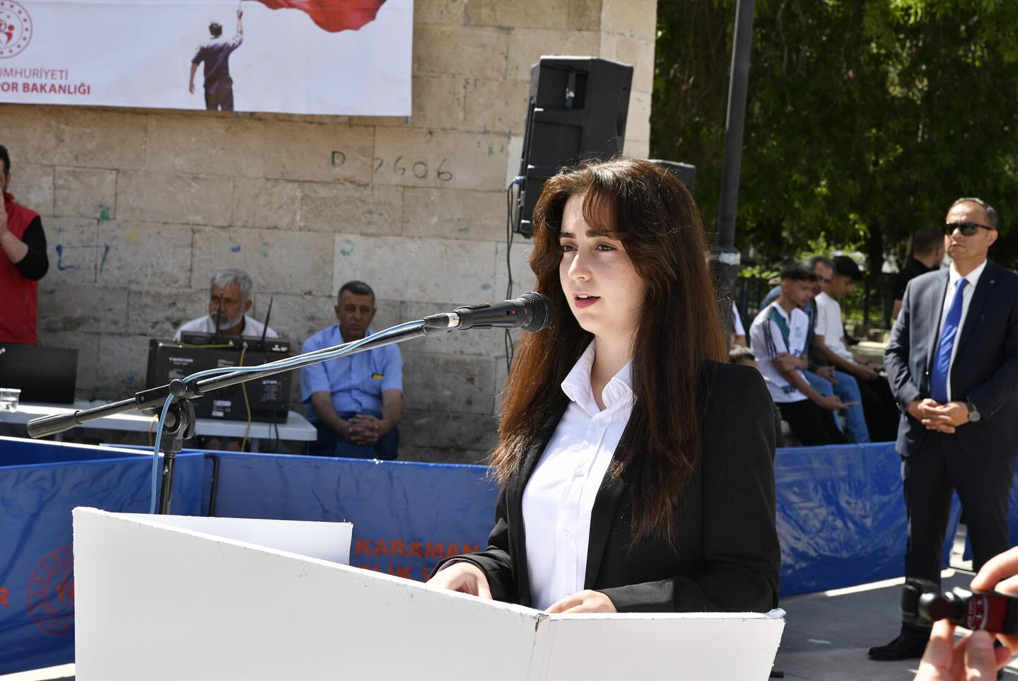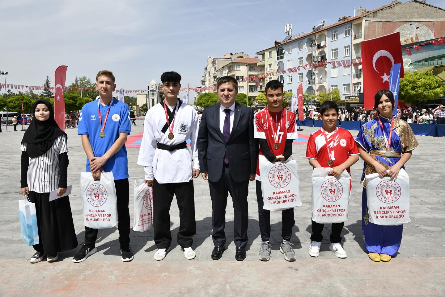 19 Mayıs Atatürk’ü Anma, Gençlik ve Spor Bayramı Tüm Yurtta Olduğu Gibi İlimizde de Büyük Bir Coşkuyla Kutlandı.Aktekke 15 Temmuz Demokrasi meydanında saygı duruşu ve istiklal marşımızın okunmasıyla başlayan kutlama programı, gençlik merkezi gönüllü genci Bahrican Kılıç’ın günün anlam ve önemini belirten konuşmayı yapması, Samet Eyvaz tarafından “19 Mayıs Gençlik Marşı” nı okuması,spor gösterileri ve halk oyunları ekibinin gösterileri ile devam eden kutlama programı, Ulusal ve Uluslararası spor müsabakalarda ve İl Milli Eğitim Müdürlüğü tarafından düzenlenen kompozisyon yarışmasında dereceye girenlere Cumhuriyet Başsavcısı Ali İhsan Akdoğan, Karaman Belediye Başkanı Savaş Kalaycı ve Valimiz H. Engin Sarıibrahim tarafından ödüllerinin verilmesiyle sona erdi.Kutlama programına; Belediye Başkanı Savaş Kalaycı, Cumhuriyet Başsavcısı Ali İhsan Akdoğan, KMÜ Rektörü Vekili Prof. Dr.Serkan Ada, Vali Yardımcısı Mehmet Yasin Erkan, İl Emniyet Müdürü Ahmet Selçuk Okumuş, İl Jandarma Komutanı Albay Dr. Murat Alkan, siyasi parti il başkanları, daire müdürleri, gazilerimiz, öğrenciler ve vatandaşlar katıldı.