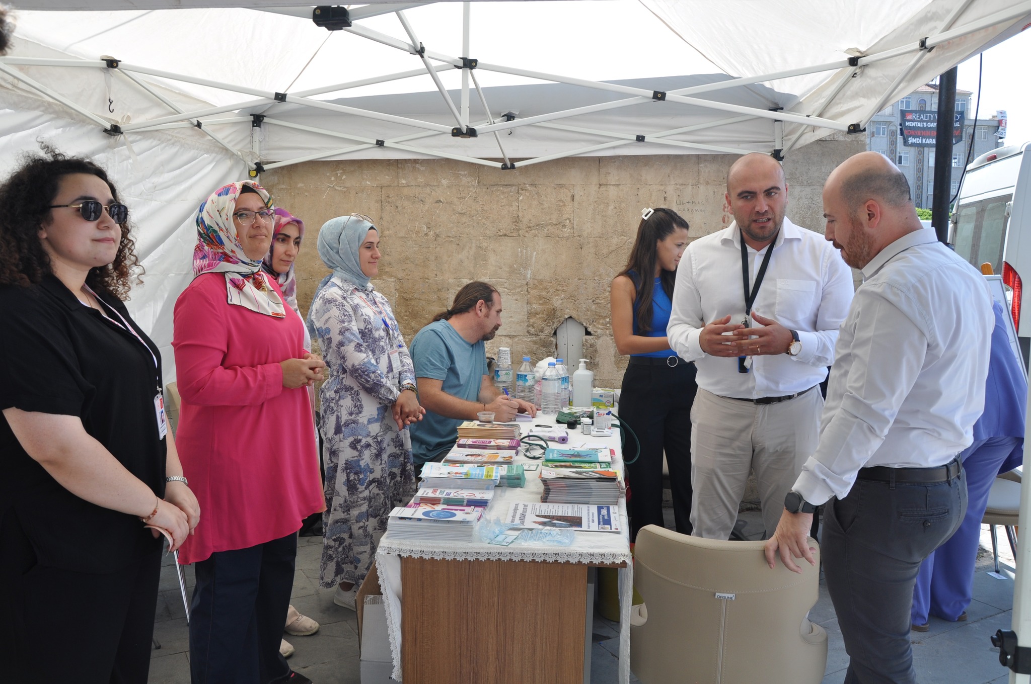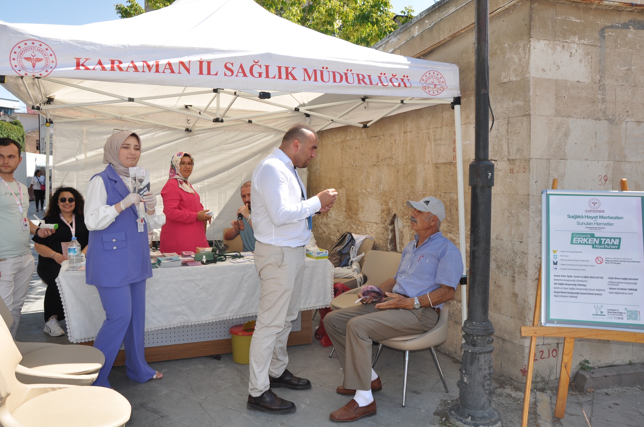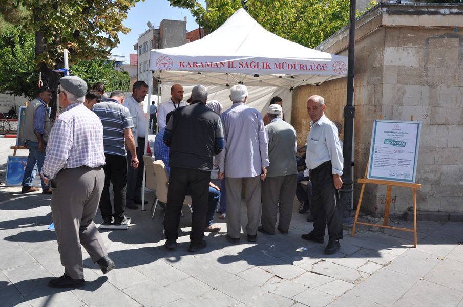 Karaman İl Sağlık Müdürlüğü Halk Sağlığı Hizmetleri Başkanlığı koordinasyonluğunda İlimiz Aktekke Meydanında obezite ile mücadele, sağlıklı beslenme, kronik hastalıklar, diyabet, kanser taramaları, anne sütü ve yenidoğan taramaları, bulaşıcı hastalıklar, akılcı ilaç kullanımı, aile hekimliği, MHRS, evde sağlık hizmetleri, aşı programları ve tüberküloz konularında halkımızı bilgilendirmek, bilinçlendirmek ve farkındalık yaratmak amacıyla stand kurulup Halk Sağlığı Haftası etkinliği yapıldı.Karaman İl Sağlık Müdürü Uzm. Dr. Mehmet Serkan Yurdakul vatandaşların sağlıklı yaşam konularında bilgilendirildiği standı ziyaret etti. Yapılan çalışmaları bir süre yerinde inceleyen Müdür Yurdakul, Toplum Sağlığı Merkezi Başkanı Dr. Emre Taşcı’dan yapılan çalışmalar hakkında bilgi aldı. Yapılan etkinlikte Yurdakul vatandaşlara toplum sağlığının önemini anlattı.