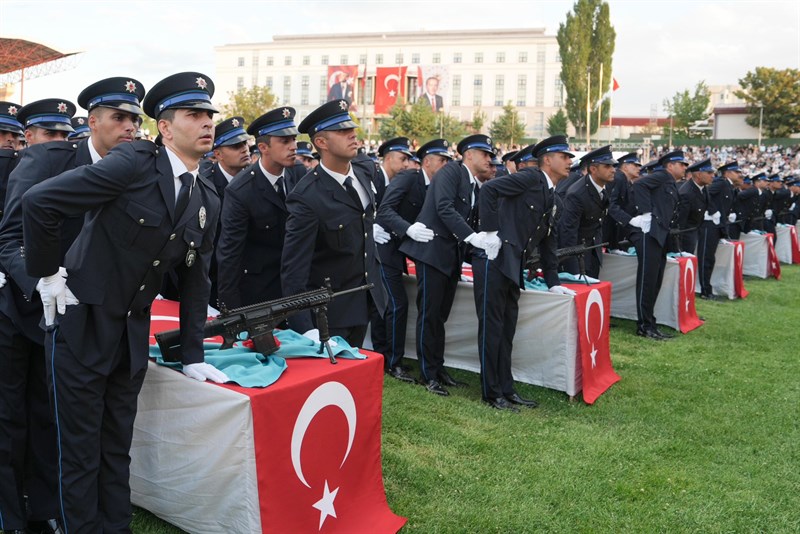 “Her biriniz, toplumsal yaşamın dirlik, düzen ve güven içinde işlemesi için çalışacaksınız. Daima milletimizin emrinde, o’nun hizmetinde olacaksınız. Bu kutsal görevinizi ifa ederken, rehberiniz hukuk, referansınız insan hakları olacaktır. Ve her zaman vicdanınıza kulak vereceksiniz. ‘Her şey eksilebilirdi insanda, ama vicdan asla.’ Vicdan sahipleri kısık seslidir. Sizler; kısık seslerin sesi olacaksınız. Cumhurbaşkanımız Sayın Recep Tayyip Erdoğan’ın liderliğinde, ‘Büyük ve Güçlü Türkiye’ idealiyle, Türkiye Yüzyılını inşa ederken, genç mezunlarımızdan çok şey bekliyoruz. Aldığınız eğitimler, edindiğiniz bilgi ve birikimlerle, İnşallah Emniyet teşkilatımıza çok değerli katkılarda bulunacaksınız.”