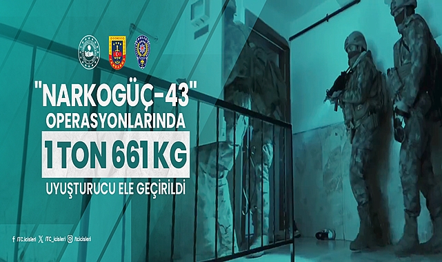 İçişleri Bakanı Ali Yerlikaya sosyal medya hesabından yaptıı paylaşımda; Uyuşturucu Madde İmalatçılarına ve Bunların Satışını Yapanlar ile Sokak Satıcılarına yönelik 45 İlde düzenlenen “NARKOGÜÇ-43”Operasyonlarında; 1 Ton 661 Kg uyuşturucu madde ve 417.000 adet uyuşturucu hap ele geçirildiğini ve 305 Zehir taciri ve sokak satıcısı yakalandığını bildirdi. Aziz Milletimizin Bilmesini isterim ki; Gençlerimizi ve geleceğimizi zehirleyen uyuşturucu tacirlerine göz açtırmayacağız. Her an enselerindeyiz. Bizden kaçamayacaklar!