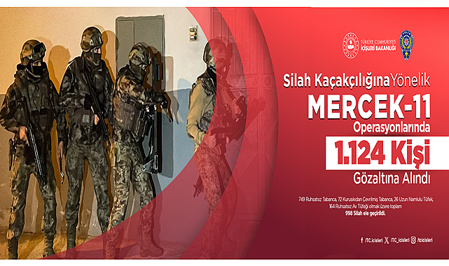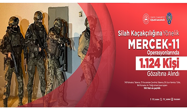 İçişleri Bakanı Ali Yerlikaya, 74 ilde düzenlenen silah kaçakçılığına yönelik Mercek-11 operasyonlarında 1124 kişinin gözaltına alındığını, 749 ruhsatsız tabanca ele geçirildiğini açıkladı.