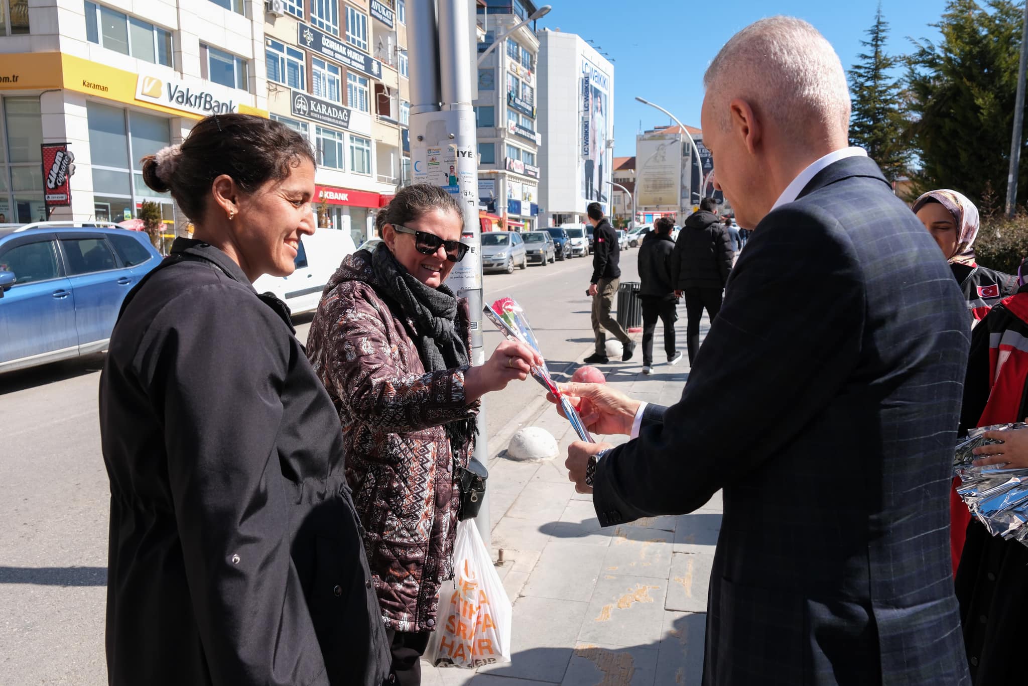 8 Mart Dünya Kadınlar Günü Dolayısıyla Karanfil Takdim Edilerek Günlerini Kutlandı.Vali Mehmet Fatih Çiçekli ve eşi Vali Yardımcısı Esengül Korkmaz Çiçekli, “8 Mart Dünya Kadınlar Günü” dolayısıyla vatandaşların karanfil takdim ederek günlerini kutladılar.İsmet Paşa Caddesi’nde, Vali Mehmet Fatih Çiçekli ve eşi Vali Yardımcısı Esengül Korkmaz Çiçekli, “8 Mart Dünya Kadınlar Günü” dolayısıyla vatandaşların karanfil takdim ederek günlerini kutladılar.