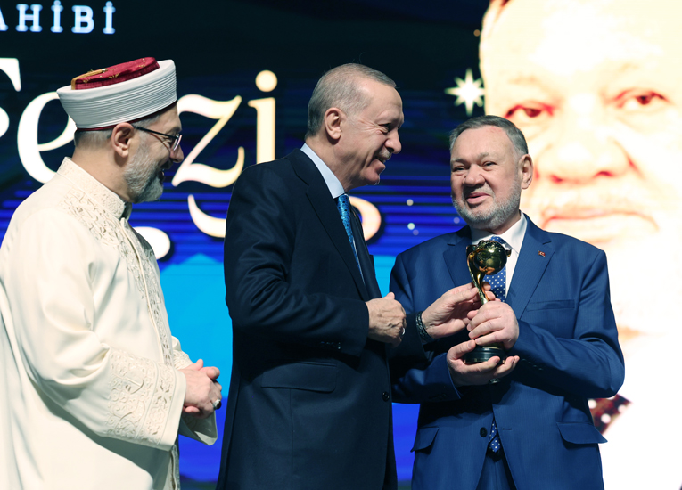 8. Uluslararası İyilik Ödülleri Töreni Gerçekleştirildi.Diyanet İşleri Başkanlığı ve Türkiye Diyanet Vakfı tarafından düzenlenen “8. Uluslararası İyilik Ödülleri” programını gerçekleştirildi.Diyanet İşleri Başkanlığı ve Türkiye Diyanet Vakfı tarafından düzenlenen “8. Uluslararası İyilik Ödülleri” programını Cumhurbaşkanı Recep Tayyip Erdoğan’ın katılımlarıyla Cumhurbaşkanlığı Külliyesi Beştepe Millet Kongre ve Kültür Merkezi’nde gerçekleştirildi.Cumhurbaşkanı Recep Tayyip Erdoğan, Beştepe Millet Kongre ve Kültür Merkezi’nde düzenlenen Türkiye Diyanet Vakfı 8. Uluslararası İyilik Ödülleri Töreni’ne katılarak bir konuşma yaptı.Cumhurbaşkanı Erdoğan, başı rahmet, ortası mağfiret, sonu ebedi azaptan kurtuluş olan Ramazan-ı Şerif’i kutladı. Farklı kıta ve ülkelerden programa katılan misafirleri selamlayan Cumhurbaşkanı Erdoğan, “Yeryüzünün dört bir yanında iyilikte ve hayırda yarışarak bir gurbet misafirhanesi olarak gördüğümüz bu dünyaya bereket katan tüm gönül insanlarına şahsım ve milletim adına saygılarımı, şükranlarımı sunuyorum” ifadelerini kullandı.İçinde bulunulan mukaddes günlerin millete, İslam âlemine ve tüm dünyaya hayır ve güzellikler getirmesi temennisinde bulunan Cumhurbaşkanı Erdoğan, Sezai Karakoç’un “Samanyolunda Ziyafet” eserinden ramazan ayını konu alan mısralarını okudu.“İYİLİK ÖDÜLÜ’NE LAYIK GÖRÜLEN TÜM KARDEŞLERİMİ TEBRİK EDİYORUM”Ramazanın gelişinin de gidişinin de mümin gönüllüler için bayram ve sevinç kaynağı olduğunu dile getiren Cumhurbaşkanı Erdoğan, şöyle konuştu: “Rabbim bizlere başının rahmet, ortasının mağfiret, sonunun da azaptan kurtuluş olduğu müjdelenen bu müstesna günleri layıkıyla ihya edebilmeyi nasip buyursun. İşte bugün Ramazan-ı Şerif’in maneviyatını en güzel şekilde yansıtan bir program münasebetiyle bir araya gelmiş bulunuyoruz. Kendi alanında artık bir markaya dönüşen Uluslararası İyilik Ödüllerimizin bu sene sekizincisini düzenliyoruz. Ödül takdim törenimizin hayırlara vesile olmasını diliyor, İyilik Ödülü’ne layık görülen tüm kardeşlerimi burada içtenlikle tebrik ediyorum.”Mevlana’nın “Her gün bir yerden göçmek ne iyi, her gün bir yere konmak ne güzel, bulanmadan donmadan akmak ne hoş. Dünle beraber gitti cancağızım, Ne kadar söz varsa düne ait” dizelerini okuyan Cumhurbaşkanı Erdoğan, şunları söyledi: “Dünle beraber sadece acısı ve tatlısıyla hatıralarımızı değil aynı zamanda dostlarımızı, büyüklerimizi, insan hazinelerimizi de uğurluyoruz. Önden giden gönül erbabından biri de 28 Şubat’ta dünya defterini kapatıp beka âlemine göç eden hattatların reisi Hasan Çelebi hocamızdı. Hasan Çelebi Hocamız ömrünü hüsnü hat sanatına adayan, her biri ilme ve sanata sevdalı pek çok talebe yetiştiren mümtaz bir şahsiyetti. Rahmetli hocamızla en son 3 Ocak’ta İstanbul’da bir araya gelmiş kendisine Necip Fazıl Saygı Ödülümüzü takdim etmiştik. Emri hak vaki olmasaydı Uluslararası İyilik Ödülümüzü de bugün yine kendisine tevdi edecektik. Eserleriyle kubbelerimizi, mihraplarımızı, cümle kapılarımızı tezyin eden Hattat Hasan Çelebi Hocamızla birlikte ebedi aleme uğurladığımız tüm büyüklerimize, tüm ilim, kültür ve sanat insanlarımıza Cenab-ı Mevla’dan bir kez daha rahmet diliyorum. Rabbim hepsini de cennetiyle, cemaliyle müjdelesin, müşerref eylesin diyorum.”Cumhurbaşkanı Erdoğan, kendilerini iyiliğin, hamiyetin, hayrın ve güzel ahlakın bu mis kokulu ikliminde buluşturan Türkiye Diyanet Vakfına ve Diyanet İşleri Başkanlığına da teşekkür ederek, “Bu sene 50. yaşını kutlayan Türkiye Diyanet Vakfımız, ‘İnsanların en hayırlısı insanlara faydalı olandır’ düsturuyla ülkemizde ve dünyanın dört bir yanında iyiliği egemen kılmak için insanlığın hizmetinde olmayı azim ve kararlılıkla sürdürüyor. Diyanet Vakfımız, yarım asırlık bu iyilik yolculuğunda eğitimden insani yardıma, kültürel faaliyetler sosyal dayanışma projelerine birçok farklı alanda başarı çıtasını her geçen gün daha da yükseğe taşıdı” dedi.“ZOR DURUMDA KALANLARA MİLLETİMİZ YARDIM ELİNİ UZATIYOR”Millî kimliğin en belirgin, en karakteristik, en köklü hasletlerinden birinin vakıf kültürü olduğunu vurgulayan Cumhurbaşkanı Erdoğan, şunları kaydetti: “Asırlar boyunca iyilik ve adalet hamuruyla yoğurduğumuz, kardeşlik ve hamiyet ruhuyla yeşerttiğimiz gönül coğrafyamızın her bir köşesi vakıf kültürümüzün eşsiz eserleriyle doludur. Camilerimiz, medreselerimiz, imarethanelerimiz, hanlarımız, çarşılarımız, sebillerimiz ve daha niceleri. Tarihe ve coğrafyaya vurduğumuz mürekkebi ilelebet kurumayacak imar, inşa ve ihya mühürleridir. Türkiye Diyanet Vakfımız işte böylesine köklü ve güçlü bir müktesebatın yüzyıllara sâri vakıf kültürümüzün taşıyıcısı olarak önemli bir rol üstleniyor. Kur’an kurslarından hafızlık mekteplerine, anaokulundan üniversiteye, Türkiye’de ve dünyanın 111 ülkesinde her kademeden binlerce öğrenciye burs veriyor, akademik destek sağlıyor. Düzenlediği uluslararası yardım kampanyalarıyla, savaş, afet ve yoksulluk sebebiyle zor durumda kalan insanlara, milletimizin yardım elini uzatıyor.”Cumhurbaşkanı Erdoğan, Türkiye Diyanet Vakfının ramazan ayında, Kurban Bayramı’nda ve daha birçok önemli günde yurt içi ve yurt dışındaki milyonlarca ihtiyaç sahibinin imdadına koştuğunu, milletin ihsan ve infak kültürünü kuş uçmaz, kervan geçmez denilen yerlerde, sadece bilmek zorunda olanların bildiği bölgelerde başarıyla temsil ettiğini belirtti.“ASYA’DAN AFRİKA’YA TÜRKİYE DİYANET VAKFIMIZ GİBİ İY