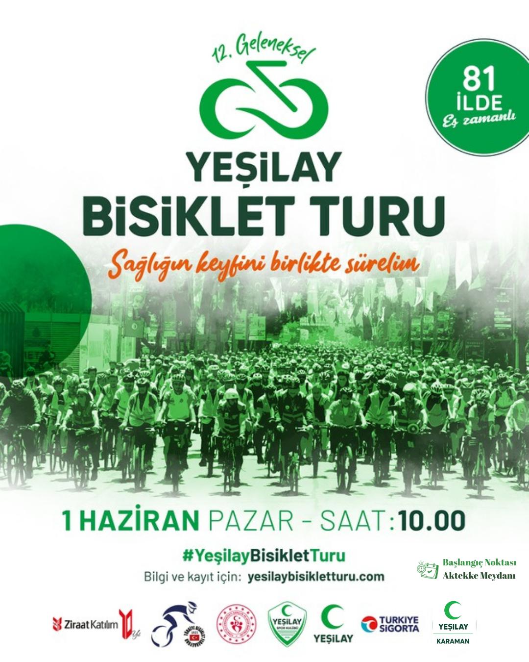 Türkiye genelinde eş zamanlı olarak düzenlenecek 12. Geleneksel Yeşilay Bisiklet Turu, Karaman'da da 1 Haziran 2025 Pazar günü yapılacak.