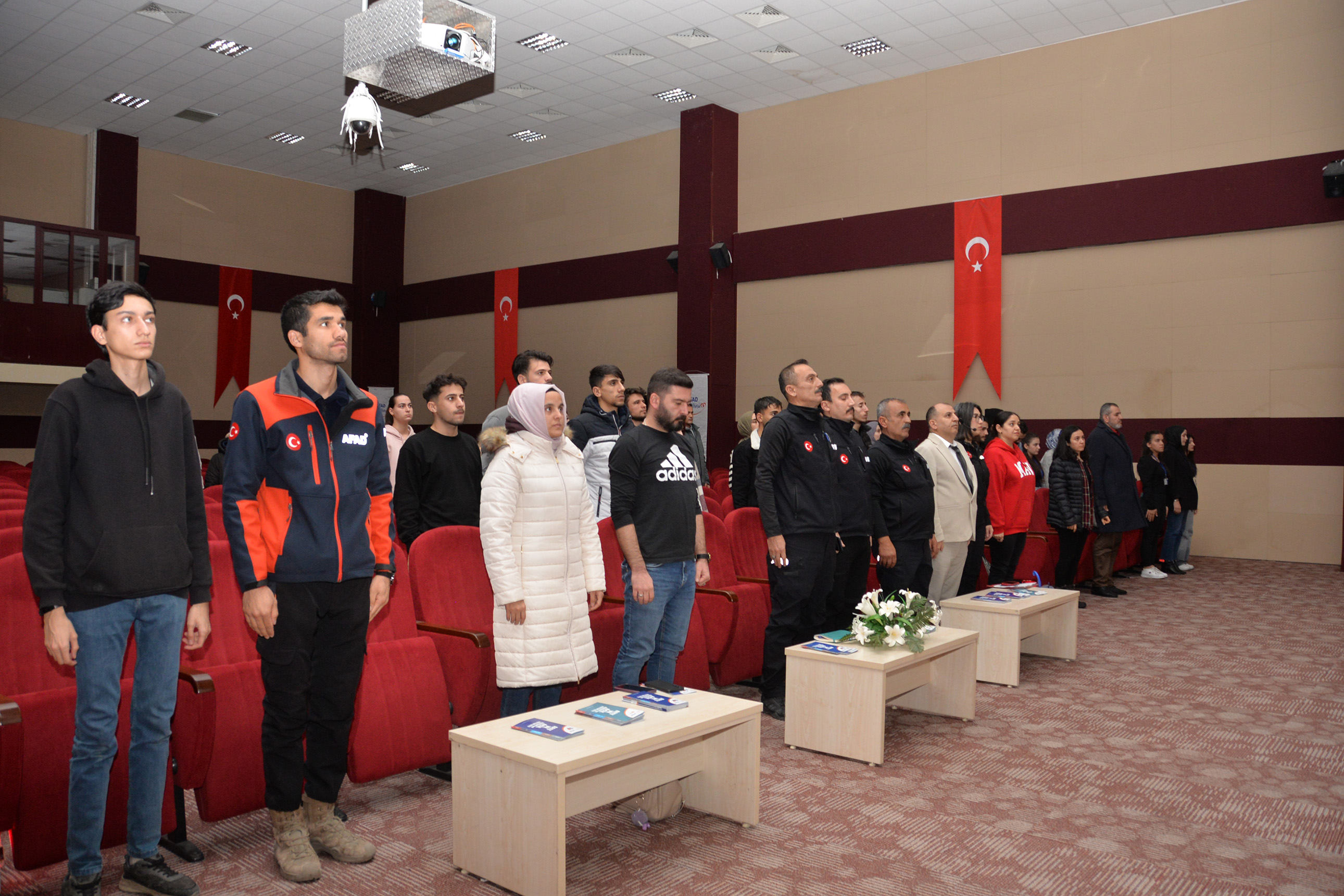 Karaman İl Afet ve Acil Durum Müdürlüğü (AFAD) iş birliğiyle düzenlenen söyleşiye üniversite personeli ve öğrenciler katıldı.