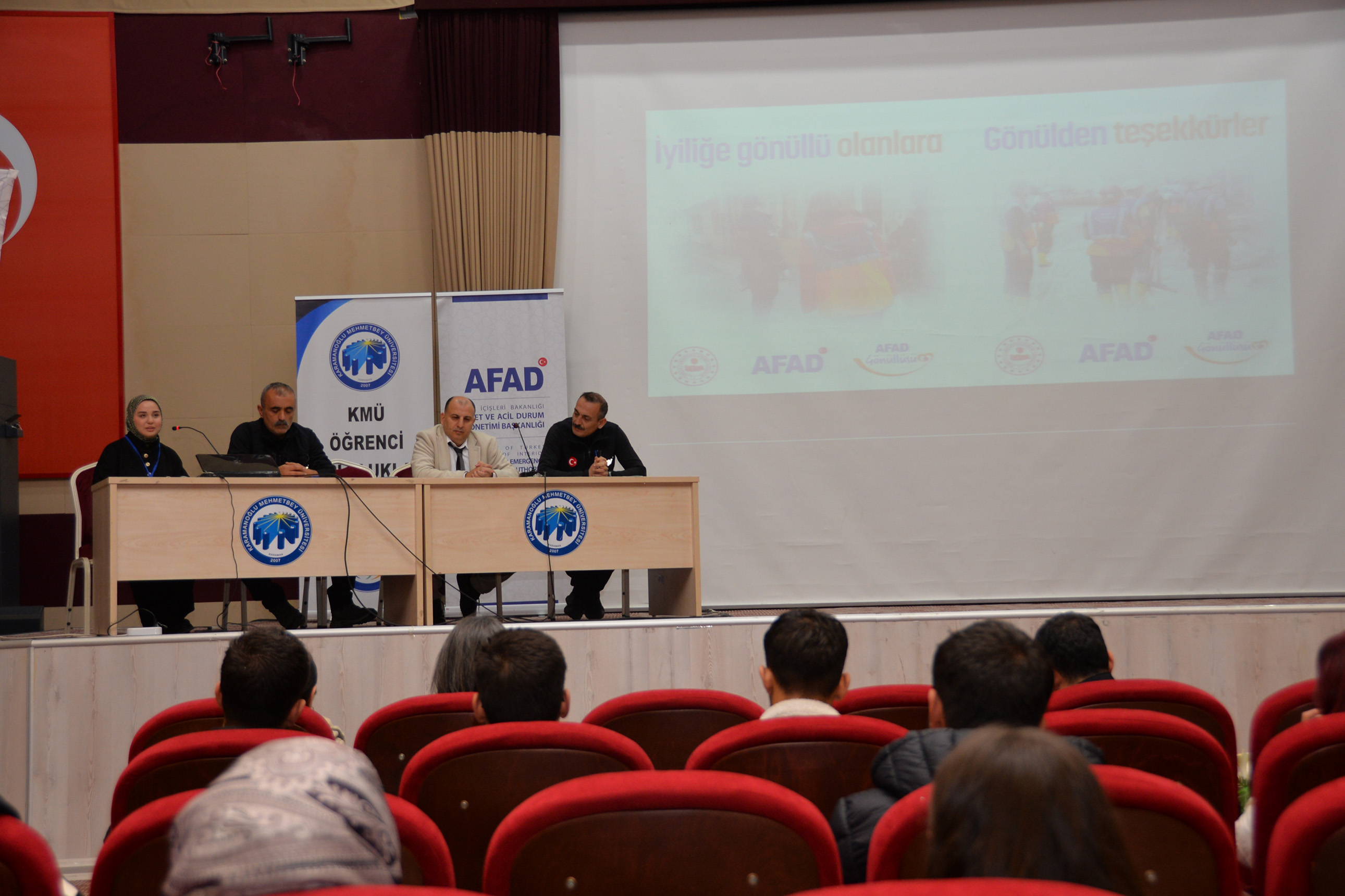 Karamanoğlu Mehmetbey Üniversitesi (KMÜ) Genç AFAD Öğrenci Topluluğu tarafından 'AFAD Gönüllülük Sistemi ve Farkındalık Söyleşi'si düzenlendi.