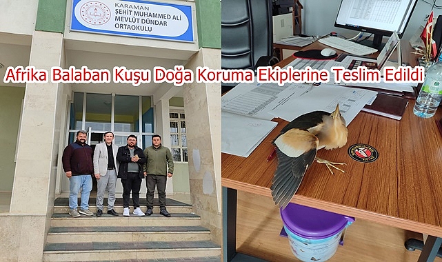 Afrika Balaban Kuşu Doğa, Koruma Ekiplerine Teslim Edildi.Şehit Muhammed Ali Mevlüt Dündar Ortaokulunda Öğretmen ve öğrenciler okul bahçesinde Afrika Balaban kuşu bularak doğa koruma ekiplerine teslim etti.