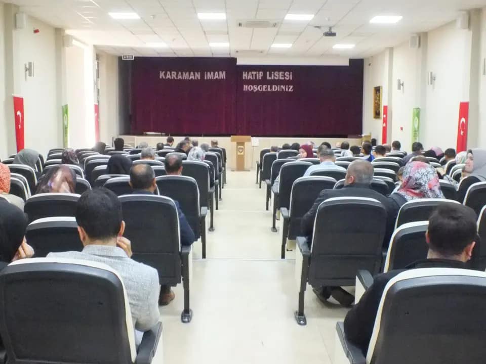 Karaman İl Müftülüğü tarafından din görevlileri ve ailelerine yönelik 'Mum Dibini Işıtır' projesi kapsamında Aile Okulu Seminerleri düzenleniyor.Diyanet İşleri Başkanlığı din görevlileri ve ailelerini destekleyerek onlara büyük bir ailenin mensubu olduklarını hatırlatmak, TDV gönüllü faaliyetlerinde yer almalarını teşvik etmek amacıyla "Mum Dibini Işıtır" projesini başlatmıştı.İki gün süren eğitimlere din görevlileri aileleri ile katılmaktadır. Bu vesile ile personel arasındaki birlik ve beraberlik te güçlenmektedir. Eğitim seminerleri sonunda hediye takdimi içeren kapanış programı düzenlenmektedir. Bu kapsamda seminerlerin ilki gerçekleştirildi.Bizlere ev sahipliği yapan Karaman Anadolu İmam-Hatip Lisesi'ne teşekkür ederiz