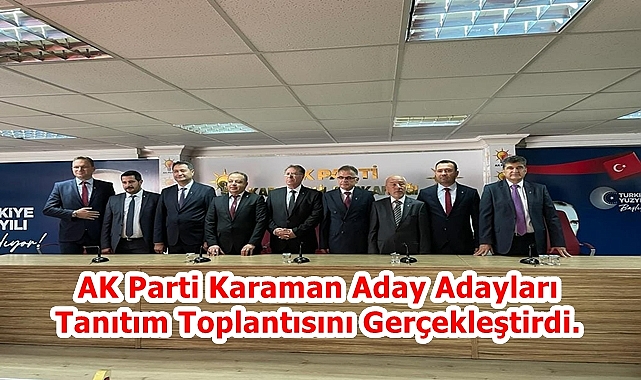 AK Parti Karaman Aday Adayları Tanıtım Toplantısını Gerçekleştirdi. AK Parti Karaman İl Başkanlığı Yaptığı Sosyal Medya Paylaşımında: ''AK Parti Karaman İl Başkanlığımız tarafından düzenlenen aday adayları tanıtım toplantımızı gerçekleştirdik. 31 Mart 2024 tarihinde yapılacak Mahalli İdareler seçimlerinde, Karaman Belediye Başkan aday adaylığı için müracaat eden aday adaylarımızın tanıtım toplantısını, Basınımızın güzide temsilcileri, teşkilatımız ve vatandaşlarımızın yoğun katılımı ile gerçekleştirdik. Partimiz ve aday adaylarımıza hayırlı olmasını diliyor, teşkilatımız adına başarılar diliyoruz.'' ifadeleri kullanıldı.