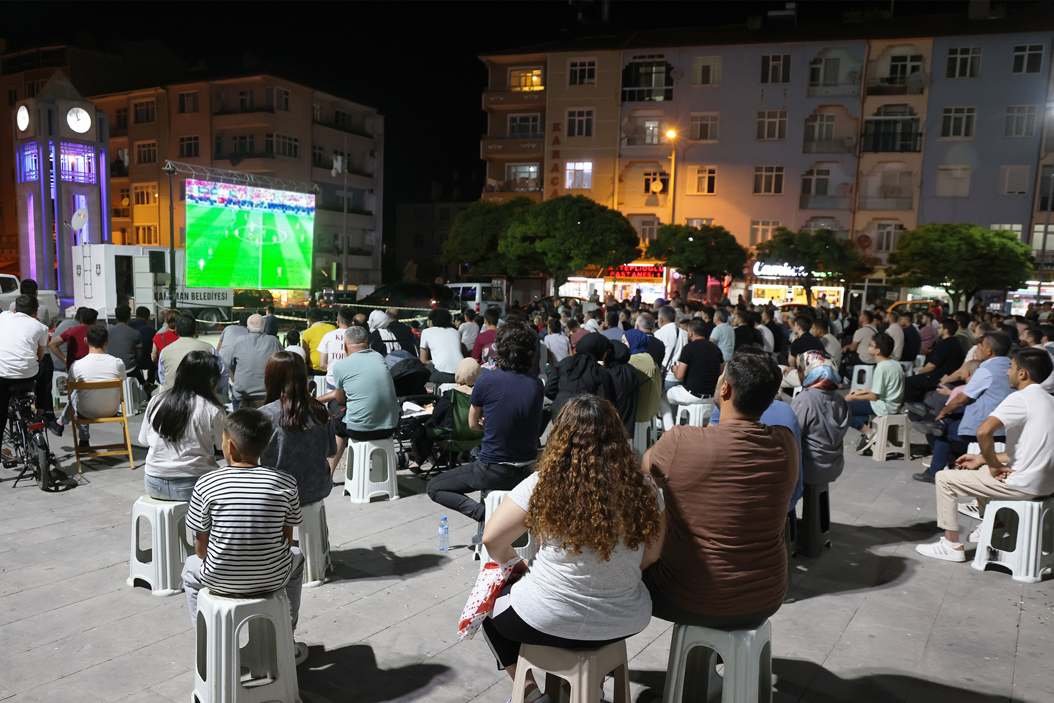 Karaman halkı, milli maç heyecanını Karaman Belediyesi tarafından Aktekke 15 Temmuz Demokrasi Meydanı'na kurulan dev ekranda yaşadı.