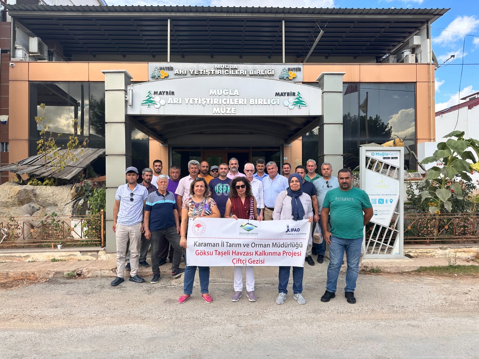İlimizde uygulanmakta olan ve bir kısım finansmanı Uluslararası Tarımsal Kalkınma Fonundan (IFAD) sağlanan Göksu Taşeli Havzası Kalkınma Projesi (GTHKP) Çiftçilerin ve Çiftçi Örgütlerinin Kapasitelerinin Geliştirilmesi Çalışmaları kapsamında Muğla iline 27-29 Eylül 2023 tarihleri arasında eğitim ve teknik gezi düzenlenmiştir.Göksu Taşeli Havzası Kalkınma Projesi ile üreticilerin daha yüksek verimlilikte üretim yapmaları desteklenmekte olup bu kapsamda 2022 yılında modern arı kovanları desteklenmiş olup bu yıl ise arıcılık barınakları ve tesisleri desteklenmektedir. GTHKP’nin ikinci bileşeni ile çiftçilerin gelirlerinin gelişmiş pazar bilgisi ve bağlantıları yoluyla artırılması hedeflenmektedir.Projenin Pazara Erişiminin Güçlendirilmesi başlıklı ikinci bileşeninin öncelikli hedefi de bu çerçevede üreticilerin/çiftçilerin gelirlerinin gelişmiş pazar bilgisi ve bağlantıları yoluyla artırılmasıdır. Bu kapsamda hali hazırda önemli ölçüde yerel pazara erişebilen proje sahasındaki üreticilerin daha geniş pazar bilgisine sahip olması, proje sahası dışında ticari ilişkiler kurabilmesi, sektörünün büyüklüğünü, farklı üretim yöntemlerini yerinde görebilmesi için Türkiye’de arı ürünleri üretiminde lider konumda bulunan Muğla iline bir ziyaret düzenlenmiştir.