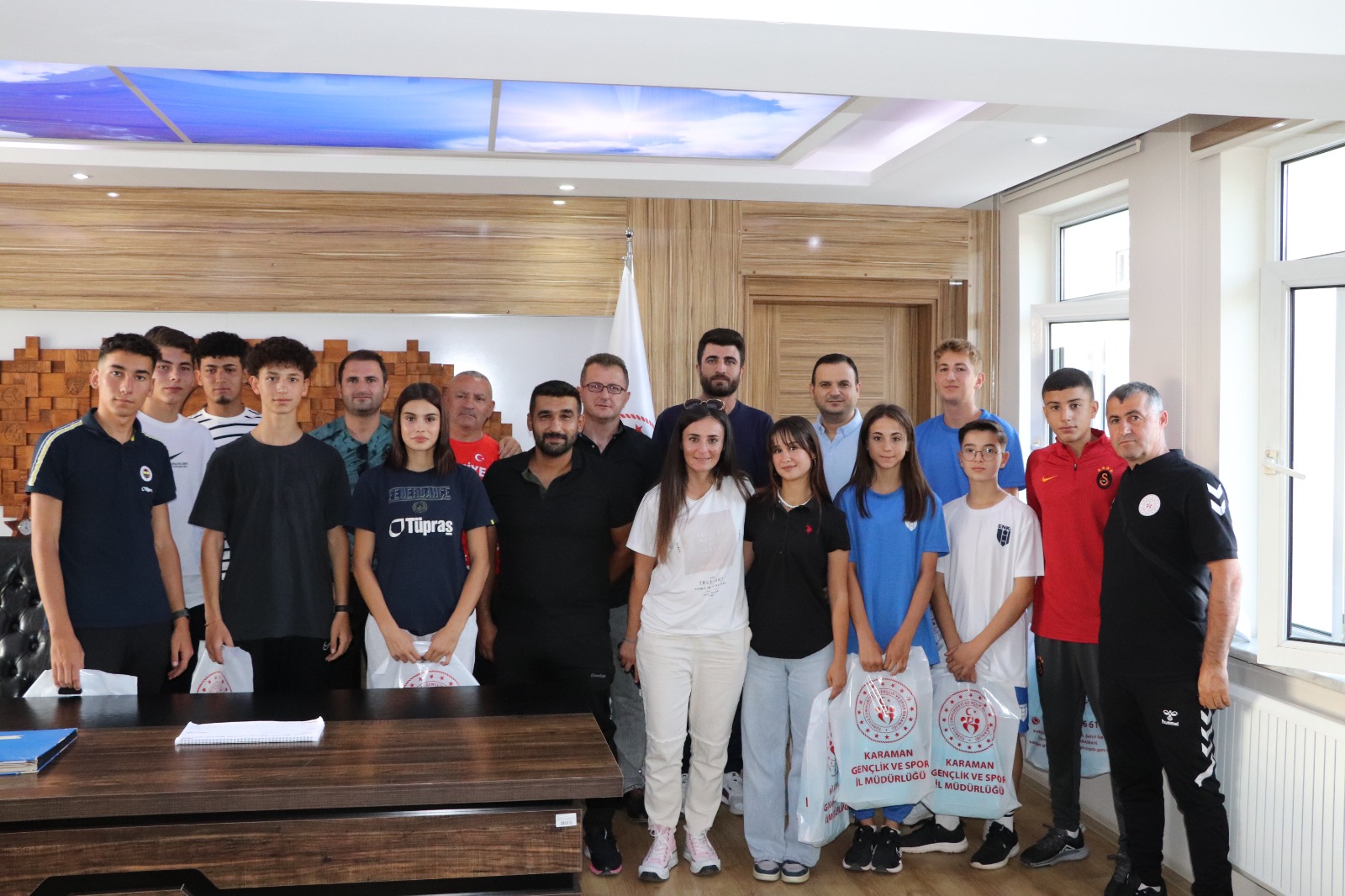 Türkiye Atletizm Federasyonu tarafından 2024 yılı yaz döneminde düzenlenen Türkiye Atletizm Şampiyonalarında madalya mücadelesi veren Karamanlı atletler, elde ettikleri derecelerle gurur kaynağı olmaya devam ediyor. Atletizm antrenörleri Murat Yurdadön, Abdulselam Kahraman, Melihşah Katman, Mevlüt İnanır, Mücahit Hamza Küçük ve Zuhal Ulaş eşliğinde Gençlik ve Spor İl Müdürü Mustafa Karadeniz’i ziyaret eden Karamanlı atletler daha büyük başarılara imza atacaklarının sözünü vererek, mutluluklarını paylaştılar.Karaman atletizm takımının başarılarıyla gurur duyduklarını belirten Gençlik ve Spor İl Müdürü Mustafa Karadeniz, “2024 yılı yaz döneminde düzenlenen şampiyonlarda ilimizi temsil eden sporcularımız başarılarıyla bizleri gururlandırmaya devam ediyor. Sporcularımızdan beklentilerimiz yüksek. Sporcularımızda hem illerini en iyi şekilde temsil etmek hem de bireysel derecelerini geliştirmek adına elinden gelen tüm performansı sergiliyorlar. Bir sporcu kolay yetişmiyor. Antrenörlerimizde sporcuları için tüm fedakârlığı yaparak onları en iyi şekilde hazırlamak için canla başla mücadele ediyor. Her biri gelecek vadeden bu sporcularımız inşallah daha büyük başarılara imza atacaklar ve hem ilimizi hem ülkemizi en iyi şekilde temsil edeceklerdir. Sporcularımızın yetişmesinde emeği geçen başta aileleri olmak üzere herkese teşekkür ediyorum” dedi. 2024 yılı yaz döneminde düzenlenen şampiyonalarda dereceye giren Karaman atletizm takımı sporcuları ise söyle;-Semih Safa Armutcu - U16 Türkiye Şampiyonası 1500 metre Türkiye ikincisi, 800 metre Türkiye üçüncüsü