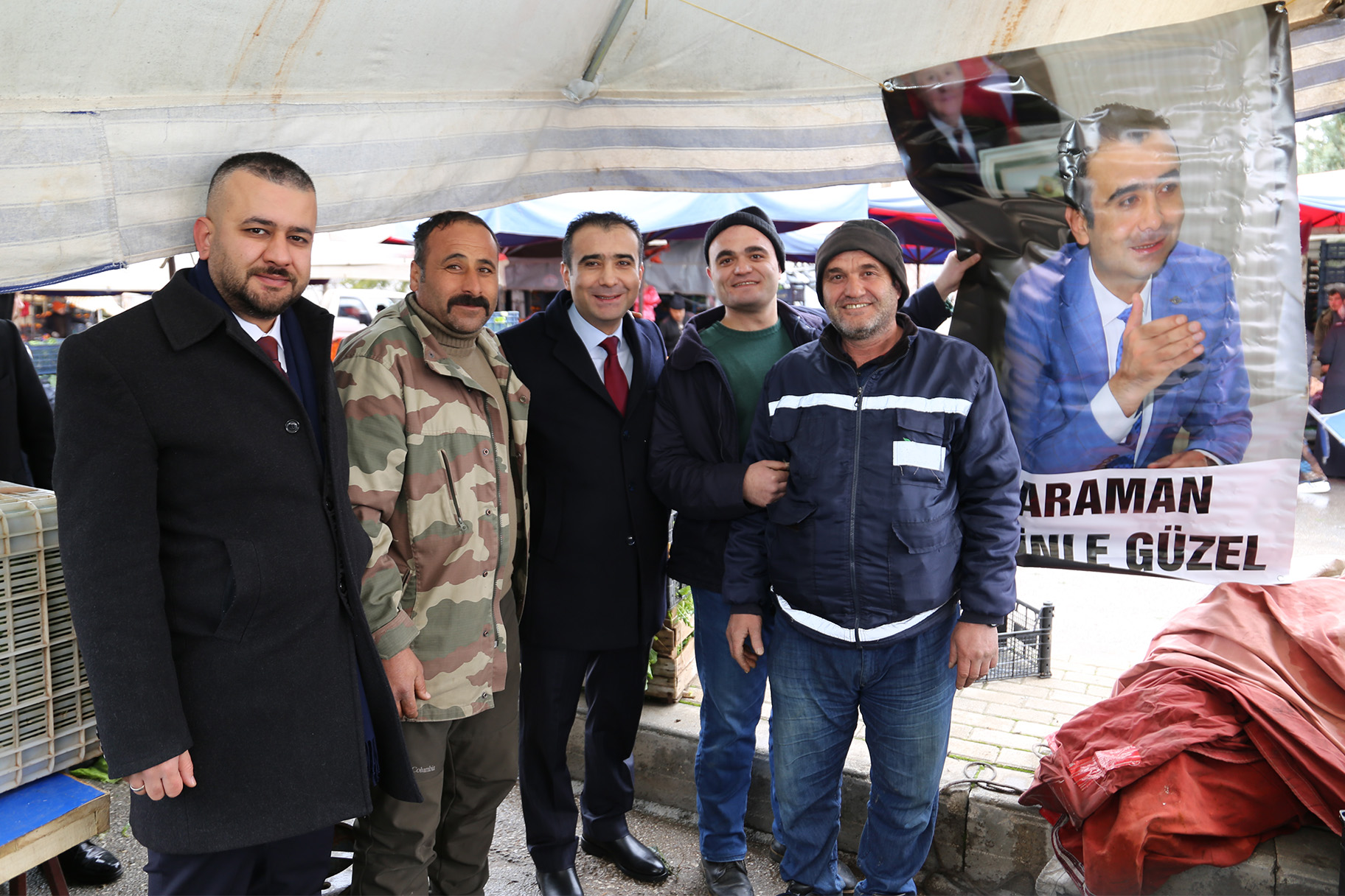 Karaman Belediye Başkanı Savaş Kalaycı, seçim çalışmaları kapsamında Pazartesi pazarını ziyaret ederek esnaf ve vatandaşlarla buluştu.