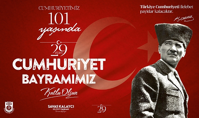Belediye Başkanı Savaş Kalaycı, mesajında: “Cumhuriyet; milletimizin bağımsızlığının ve hürriyetinin simgesi, geleceğe umutla bakmamızın en sağlam teminatıdır. Tarihimizden aldığımız azim ve cesaretle, bugün büyük bir gururla kutladığımız Cumhuriyetimizi, değerlerimize bağlı kalarak daha nice asırlara taşıyacağımıza kimsenin şüphesi olmasın. Cumhuriyetimizin 101. yılı vesilesiyle Gazi Mustafa Kemal Atatürk ve bu toprakları bizlere miras bırakan ecdadımız başta olmak üzere, vatanı için canlarını feda eden tüm şehitlerimizi ve ebediyete irtihal eden gazilerimizi rahmet ve şükranla yâd ediyor, hayatta olan gazilerimize minnetlerimi sunuyor, tüm hemşehrilerimi sevgi, saygı ve muhabbetle selamlıyorum. Cumhuriyet Bayramımız kutlu olsun" dedi.