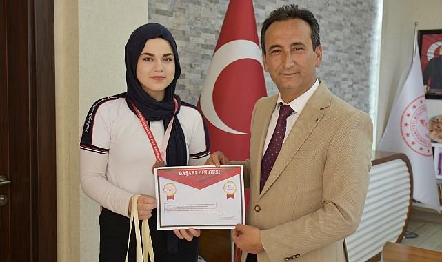 Ziyaretin sonunda İl Millî Eğitim Müdürü Mehmet Çalışkan, Güzel Cüccam’ı başarısından dolayı ödüllendirirken, hatıra fotoğrafı çekimiyle program sona erdi.