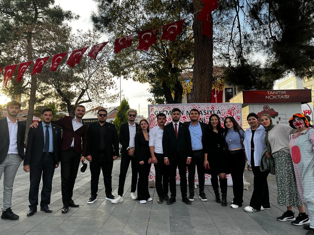 ''Millet olarak şanlı tarihimizin çok önemli bir dönüm noktası olan Cumhuriyetimizin ilanının 100. yıl dönümünü gururla kutluyoruz. Ebedi Başkomutanımız Mustafa Kemal Atatürk'ün çevresinde kenetlenen her daim hür yaşamış milletimiz kendisine vurulmak istenen esaret zincirlerini kırarak Milli Mücadeleden zaferle çıkmıştır. Bu önemli zaferin ardından Türkiye Cumhuriyeti'nin kurulması, tarihin ender kaydettiği bir başarıdır. Ulu Önderimiz Mustafa Kemal Atatürk’ün “Türk milletinin karakter ve adetlerine en uygun olan idare, cumhuriyet idaresidir” sözüyle belirttiği gibi bağımsızlığına düşkün milletimizin azim ve kararlılığı sayesinde “Hakimiyet Kayıtsız ve Şartsız Milletin” olmuştur. Ulu Önderimiz Mustafa Kemal Atatürk’ün kurduğu Cumhuriyet olmuş, bitmiş bir süreç değildir. Tam tersine onun devrimcilik ilkesi gereği sürekli olarak yeniliklere değişimlere açık bir süreçtir. Bu önemli görevde, gelecekte bu ülkenin söz sahibi olacak olan yani bu ülkenin gerçek sahibi biz gençlere düşmektedir. Bizler Ulu Önderimiz Gazi Mustafa Kemal Atatürk’ün açmış olduğu yolda daima Cumhuriyet meşalesini muasır medeniyetlerin üzerinde taşıyacak ve nice yüzyıllara imza atacağız. Ne Mutlu Türküm Diyene '' ifadelerini kullandı.