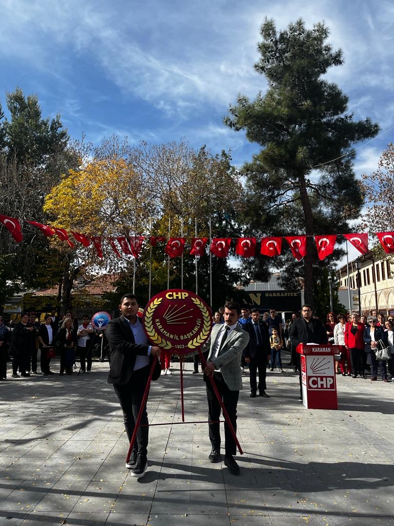 Saygı duruşu ve İstiklal Marşı ile başlayan coşkulu kutlama devamında çelenk taktimi ile devam etti, daha sonrasında CHP Karaman Gençlik Kollarınca tertip edilen Cumhuriyet Resim Sergisi ve Cumhuriyetimizin 100. Yılına özel Karaman Gençliğine yönelik 100. Yıl pankartı Karamanlı Cumhuriyetçi gençler tarafından el baskısı yapılarak boyandı