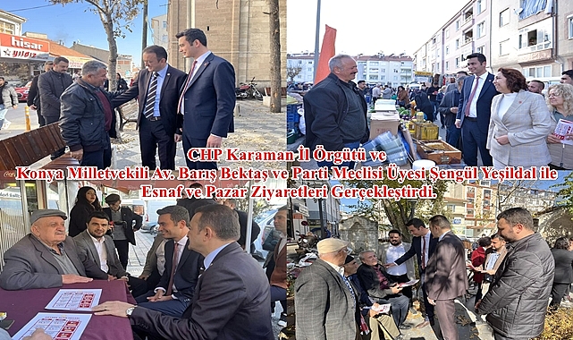 CHP Karaman İl Örgütü Konya Milletvekili Av. Barış Bektaş ve Parti Meclisi Üyesi Şengül Yeşildal ile Birlikte Esnaf ve Pazar Ziyaretleri Gerçekleştirdi.