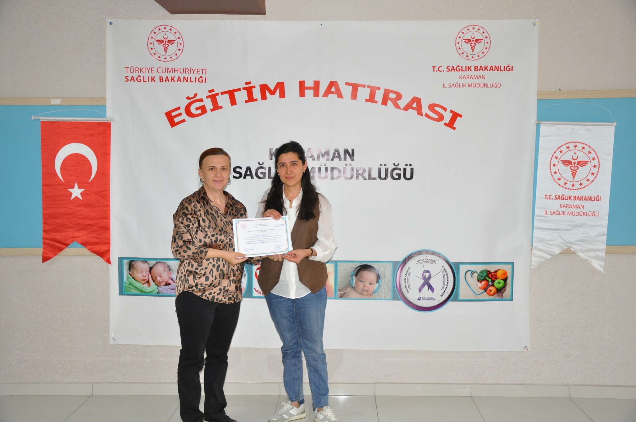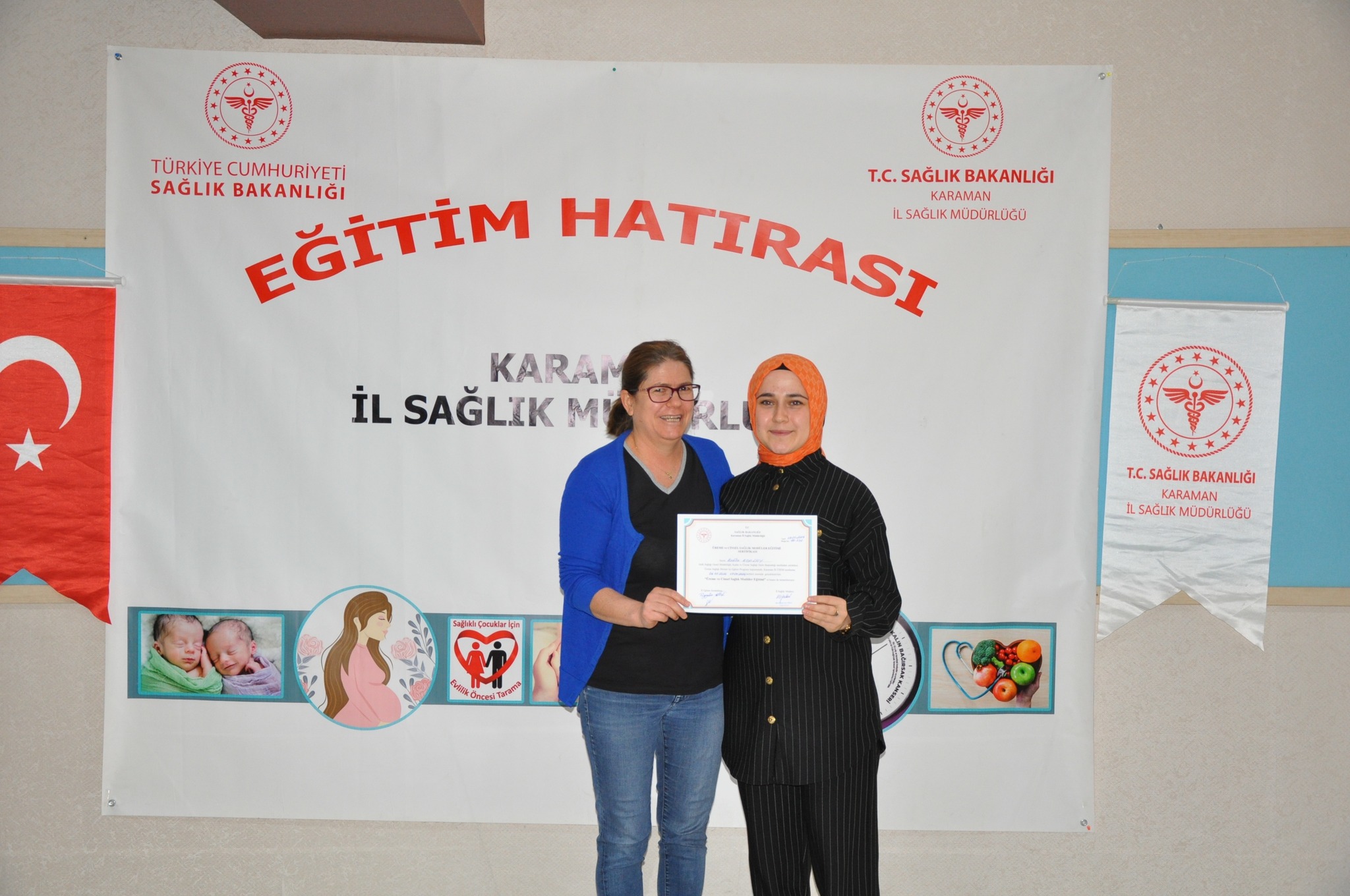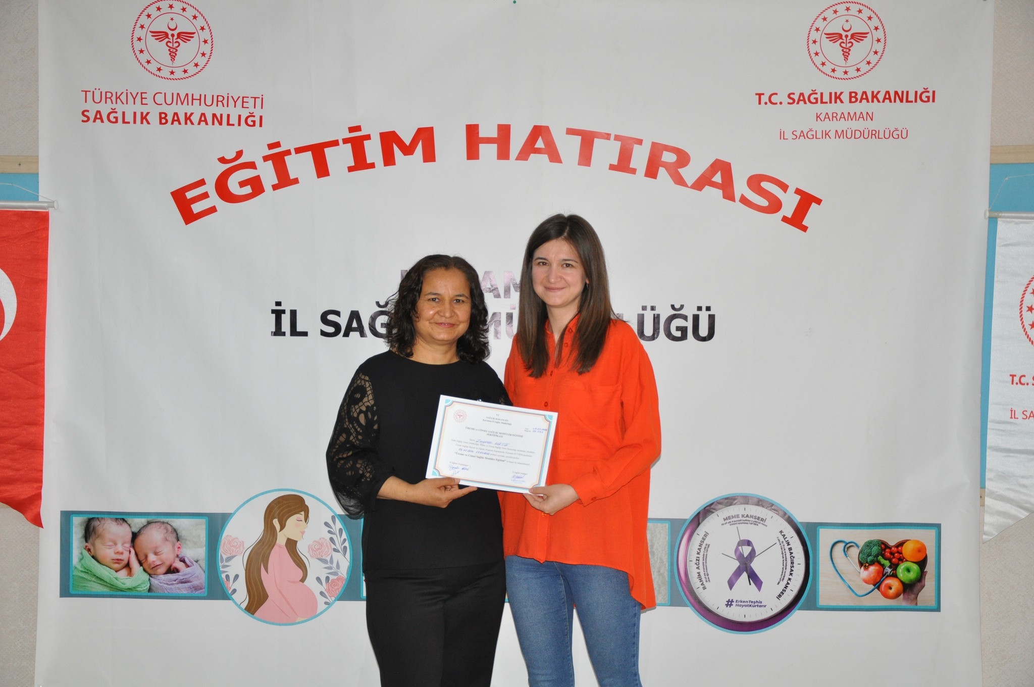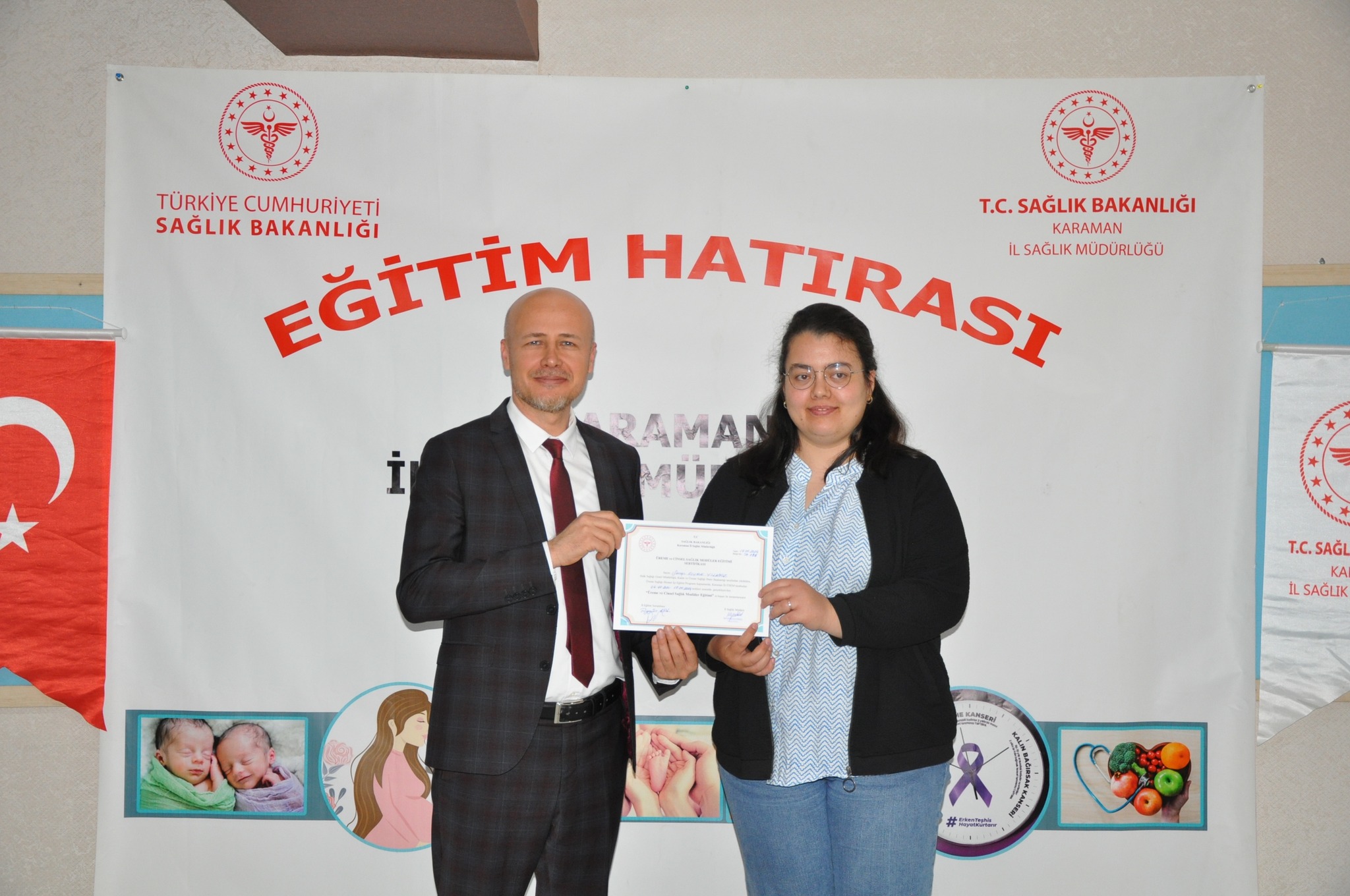 Karaman İl Sağlık Müdürlüğü Halk Sağlığı Hizmetleri Başkanlığı tarafından aile hekimleri, aile sağlığı çalışanları ve hastane personellerine yönelik ‘’Cinsel Sağlık ve Üreme Sağlığı Modüler Eğitimi’’ verildi.Halk Sağlığı Genel Müdürlüğü Kadın ve Üreme Sağlığı Daire Başkanlığının programları kapsamında olan ‘’Cinsel Sağlık ve Üreme Sağlığı Modüler Eğitimi’’ Karaman Üreme Sağlığı Eğitim Merkezi (ÜSEM)’de yapıldı. Anne ve bebek ölümlerini önlemek ve sağlığını korumanın amaçlandığı eğitimde; aile planlaması yöntemleri, cinsel yolla bulaşan enfeksiyonlardan korunma yolları, gebelik öncesi, gebelik, doğum ve lohusalık dönemlerinde ihtiyaç duyulan sağlık hizmetleri konularının ele alındığı 3 modül işlendi.17.05.2024 tarihinde tamamlanan eğitimde; Doktor, Ebe ve Hemşirelerden oluşan katılımcılara Halk Sağlığı Hizmetleri Başkanlığınca sertifikaları takdim edildi.