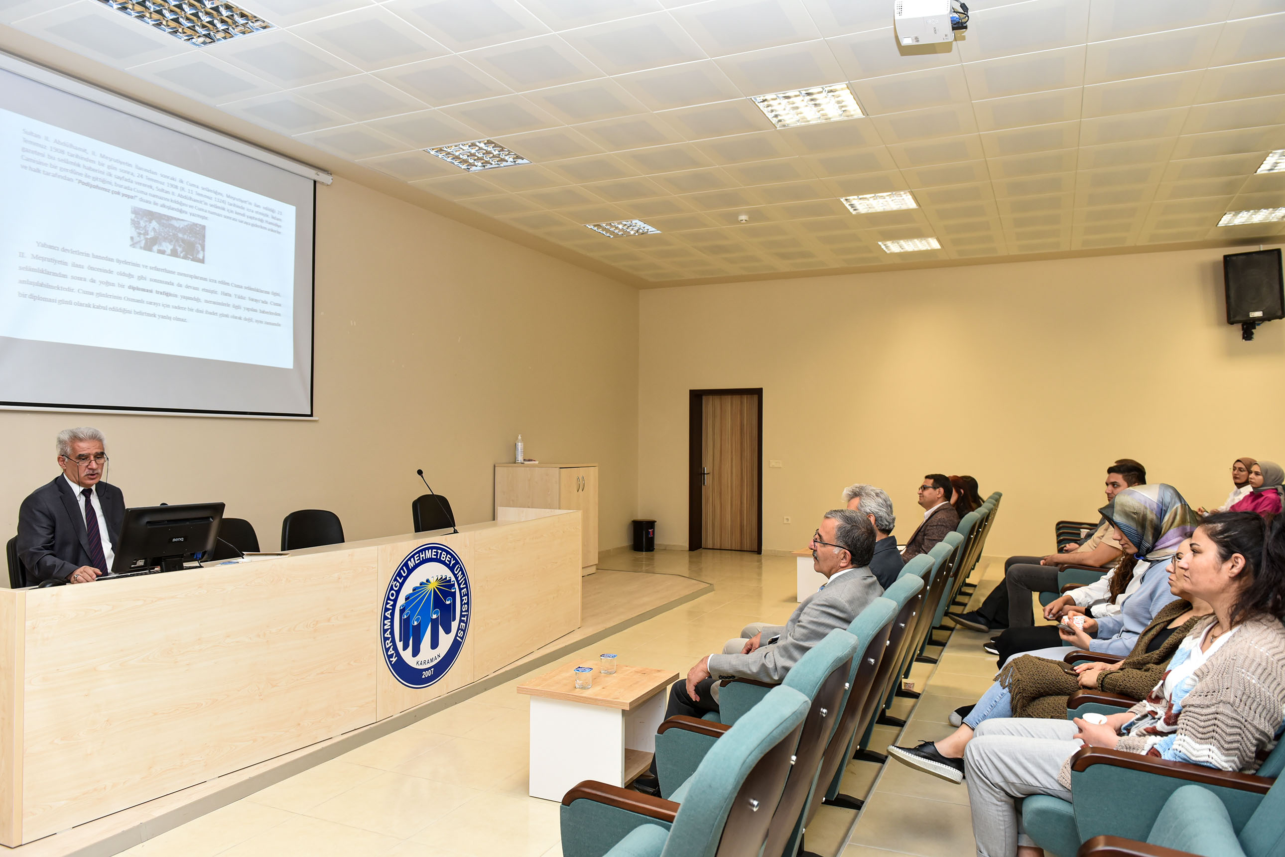Edebiyat Fakültesi Tarih Bölümü Öğretim Üyesi Doç. Dr. Alaattin Uca'nın konuşmacı olduğu ilk söyleşiye KMÜ Rektörü Prof. Dr. Mehmet Gavgalı, üniversitenin akademik ve idari personeli katıldı.