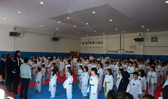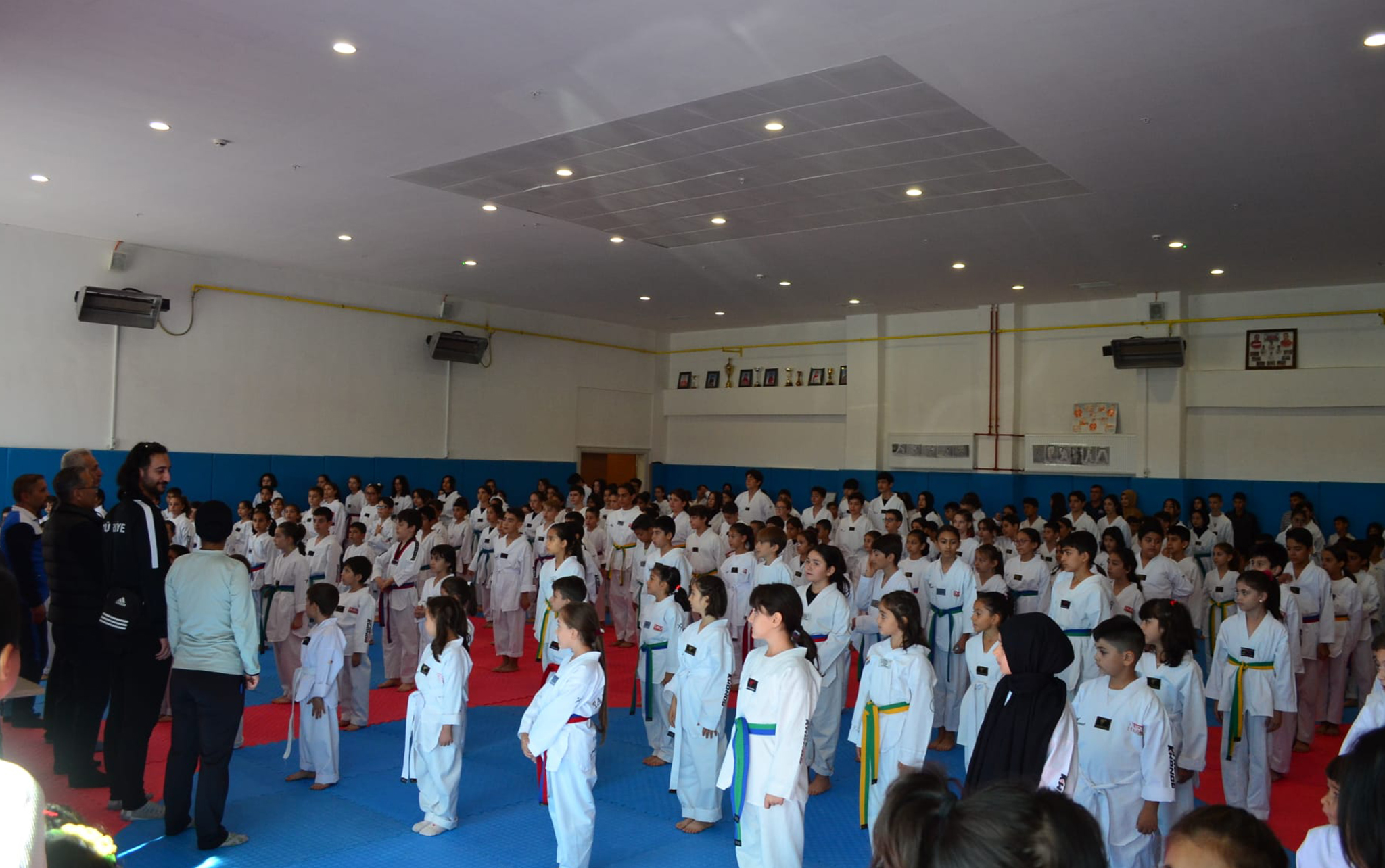 Merkez Spor Salonu’nda gerçekleştirilen kuşak sınavında sporcular bir üst kuşağa terfi edebilmek için ter döktü. Her yaş kategorisinde sporcunun yer aldığı sınavlara sporcu aileleri ve vatandaşlarda yoğun ilgi gösterdi. Cumhuriyetin 100. Yılında bir üst kemere yükselen sporcular mutluluklarını ise havaya kemer fırlatarak kutladı.