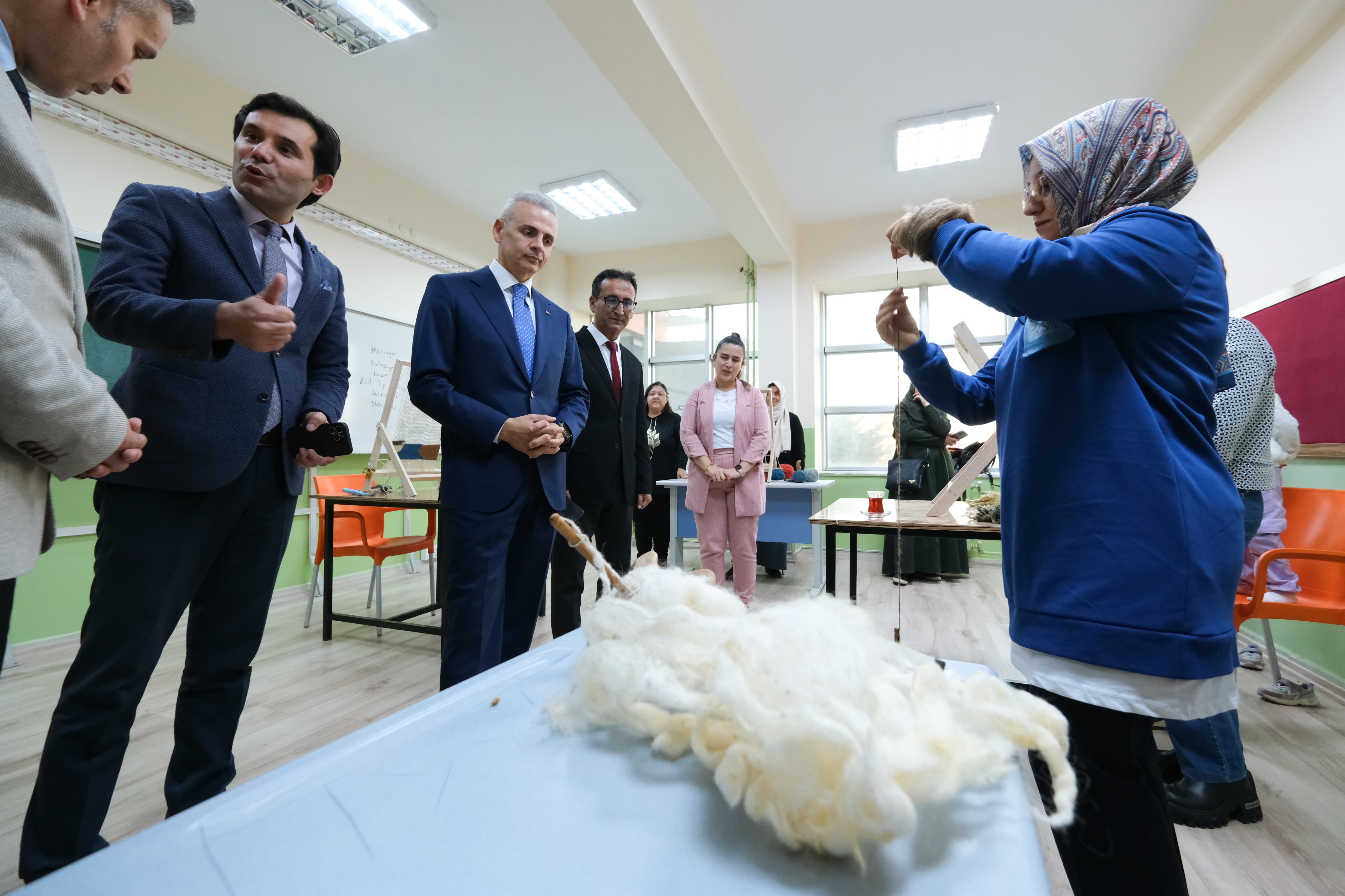 Karaman Bilim ve Sanat Merkezi (BİLSEM), Karamanoğlu Mehmetbey Üniversitesi (KMÜ) Sanat Tasarım ve Mimarlık Fakültesi ile KMÜ Türk Halk Kültürü Uygulama ve Araştırma Merkezi işbirliğinde düzenlenen ve KMÜ Sanat Tasarımı ve Mimarlık Fakültesi Öğretim Üyesi Dr. Mustafa Konuk’un atölye liderliğinde hazırlanan “Dokumanın Serüveni” adlı etkinlik gerçekleştirildi.Sanatseverlerin ve katılımcıların yoğun ilgisiyle gerçekleştirilen ve dokuma sanatının tarihsel ve kültürel birikimini aktarmayı amaçlayan etkinlik, BİLSEM öğrencileri ve velileriyle birlikte KMÜ Sanat Tasarım ve Mimarlık Fakültesi öğrencilerinin de katkılarıyla zengin bir içerikle sunuldu. Vali Mehmet Fatih Çiçekli, etkinlikte yaptığı konuşmada, bu tür çalışmaların hem geleneksel el sanatlarını yaşatma hem de gelecek nesillere aktarma açısından son derece önemli olduğunu vurguladı.Etkinlikte daha önce teorik bir sunumla ele alınan dokuma sanatı, açılan atölyelerde uygulamalı çalışmalarla hayata geçirildi.Karaman İl Milli Eğitim Müdürü Mehmet Çalışkan’ın da katıldığı etkinlik kapsamında, dokuma, doğal boyama, ip eğirme ve ebru gibi geleneksel sanat dallarını içeren atölyeler düzenlendi. Atölyelerde, KMÜ Sanat Tasarım ve Mimarlık Fakültesi öğrencileri, BİLSEM öğrencileri ve onların velileri birlikte çalışarak el emeği ürünler ortaya koydu. Katılımcılar, geleneksel yöntemlerle dokuma yapmayı ve doğal boyama tekniklerini öğrenirken, Türk kültürünün önemli bir parçası olan ebru sanatını deneyimleme fırsatı buldu.