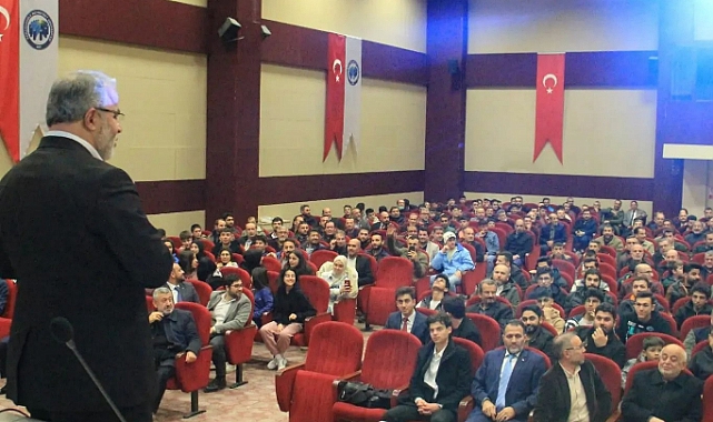 Karamanoğlu Mehmetbey Üniversitesi Şehit Ömer Halis Demir Konferans Salonu’nda gerçekleştirilen buluşmada Diyanet İşleri Başkan Yardımcısı Dr. Burhan İşliyen, gençlerle bir araya geldi.Kur’an-ı Kerim tilavetiyle başlayan programın açılış konuşmasını İl Müftüsü Faruk Gürbüz yaptı.Ardından kürsüye gelen Dr. İşliyen ‘’Bir gencin elinden tutmak ve onu hakikatle buluşturmak insanın dünya hayatında yapabileceği en faziletli en güzel davranışlardan bir tanesidir. Hangi dünyanın peşinde olduklarını tespit edemediğimiz, dünyalarını giremediğimiz, düşüncelerini çözemediğimiz ,beklentilerine cevap veremediğimiz çocuklarımızı, ancak ‘Sevgi’ sözcüğün ifade ettiği bir duyguyla kazanmamız mümkün olabilir. Sevgiye aç olan çocuklar telefon ekranında, tabletin derinliklerinde hatta Allah korusun uyuşturucu batağında sevgiyi arayabiliyorlar. O yüzden bizim içini doldurmamız gereken ‘Sevgi’ sözcüğü, evimizde canlandırmamız gereken kavram ‘Sevgi’ kavramıdır.’’ dedi.Yeryüzünde insanın yükselebileceği en ulvi makamın Allah’a kulluk makamı olduğunu ifade eden İşliyen ‘ Takdir etmemiz gereken başarı Allah'ın rızasına uygun başarı olmalıdır. İşine haram karışan başarıyı takdir etmek kişinin imanının sıkıntıya girmesine ve kalbinin bozulmasına sebep olur. Çünkü kalp bozulursa bütün beden bozulur,kalp ölürse bütün beden ölür, kalp katılaşırsa zikri kabul etmez, imanı kabul etmez, Allah'ın huzurunda secdeye gitmeyi kabul etmez. Allah'ın kıymet verdiğine yatırım yapmak lazım. Allah'ın kıymet verdiği ise imanla mutmain olmuş bir kalptir, bedene yansıyan güzel ahlaktır. Salih, yararlı, faydalı işler yani Rabb'imizin rızası için yapmış olduğumuz ibadetlerdir.’ diye konuştu.Buluşmaya, Sicil Daire Başkanı Orhan İşler, Zekat Hizmetleri Daire Başkanı Turgut Erhan, İl Müftüsü Faruk Gürbüz, Müftü Yardımcıları ve din görevlileri ve gençler katıldı.