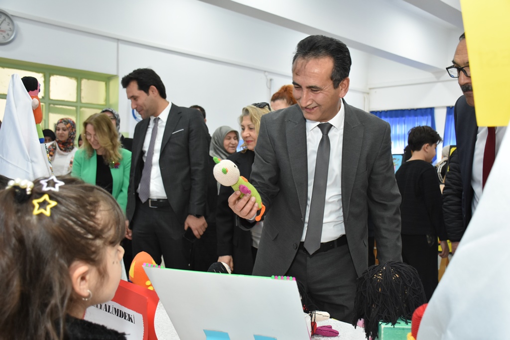 Açılış konuşmasının ardından İl Millî Eğitim Müdürü Mehmet Çalışkan ve beraberindeki protokol üyeleri, stantları gezerek projelerde yer alan öğrenci ve öğretmenlerden çalışmalar hakkında bilgi aldı. Sergide, geri dönüşüm malzemelerinden yapılmış sanatsal ürünler, öğrencilerin hayal dünyalarını yansıtan el yapımı oyuncaklar, aile katılımıyla hazırlanan etkinlik dosyaları ve deyimlerin öğrenciler tarafından resmedildiği özgün çalışmalar büyük beğeni topladı.