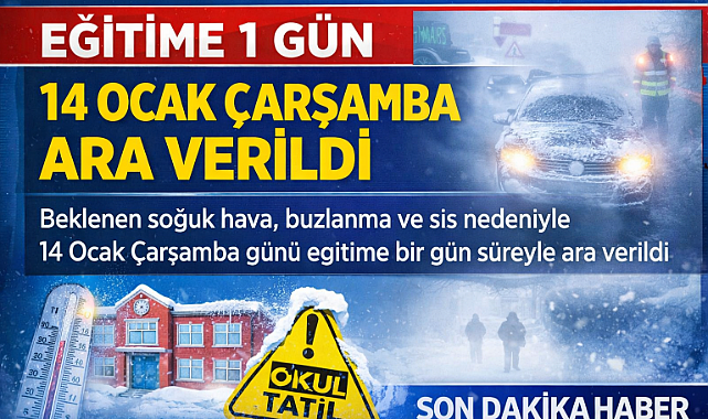Bu kapsamda, 14 Ocak Çarşamba günü Sarıveliler genelinde tüm resmi ve özel, örgün ve yaygın eğitim kurumlarında eğitim ve öğretime bir gün süreyle ara verildiği açıklandı.