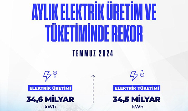 Elektrik üretimi 34,6 Milyar kWh, tüketimi de 34,5 Milyar kWh ile tüm zamanların en yüksek aylık değerine ulaştı.