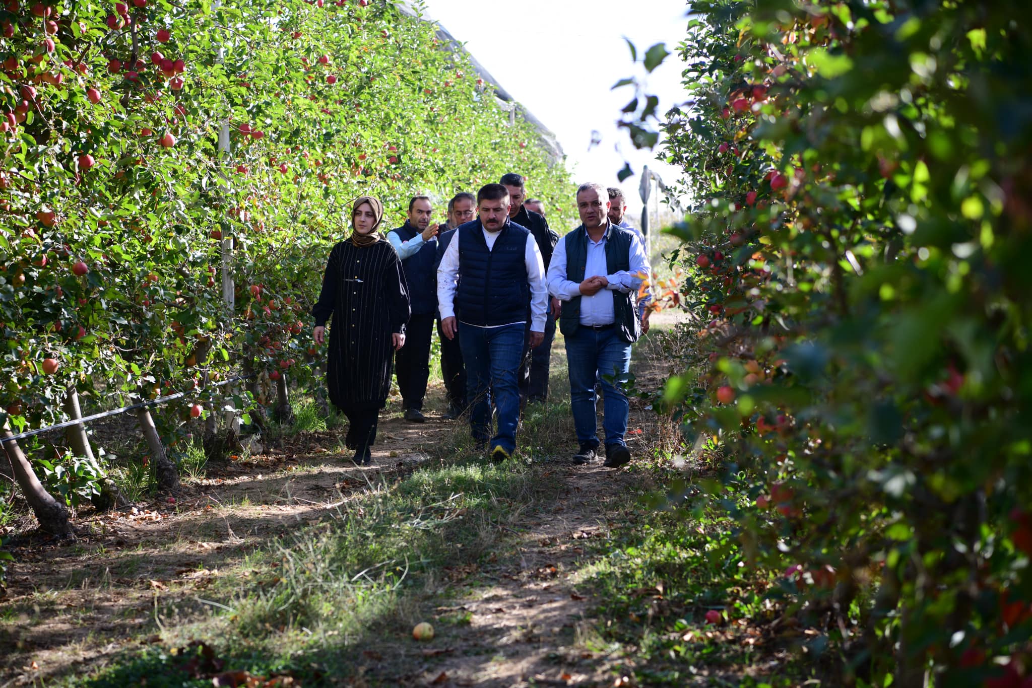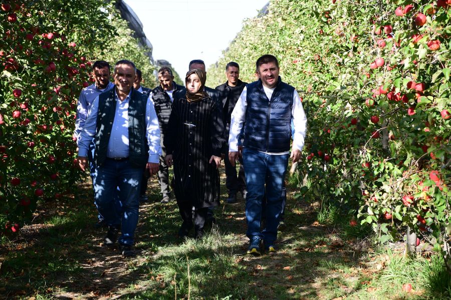 Vali H.Engin Sarıibrahim Türkiye’nin en büyük elma bahçesi olan Engin Tarım’a ait Elma bahçesinde incelemelerde bulundu.