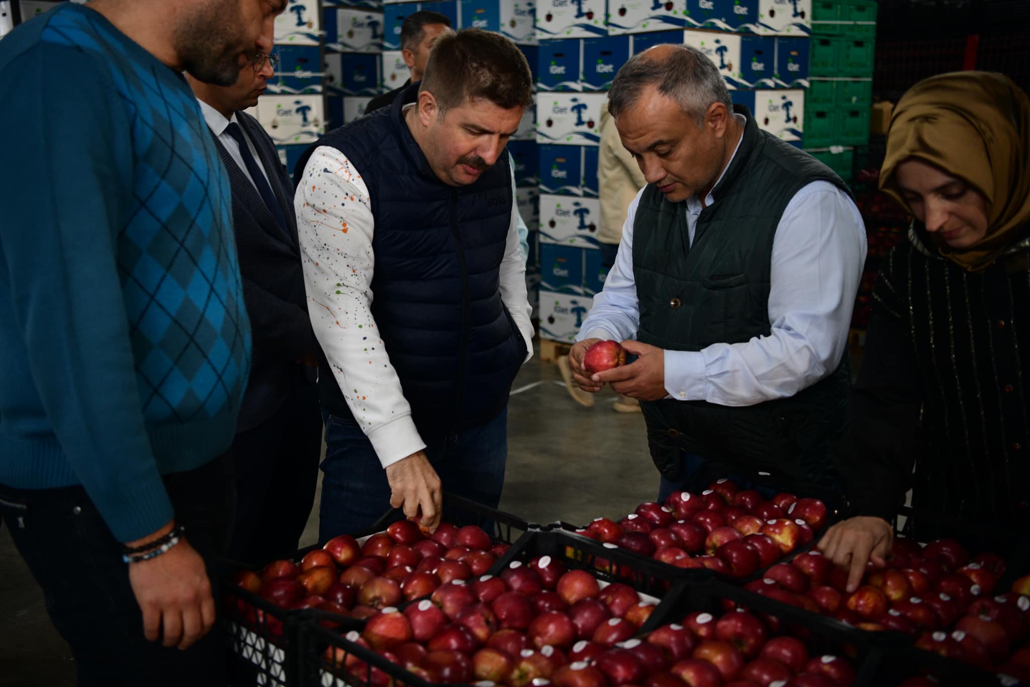 Akçaşehir Beldesinde bulunan 8650 dekar arazi üzerine kurulmuş içerisinde 2,850.000 ağaç 27 çeşit elmanın bulunduğu bahçede incelemede bulunan Vali H.Engin Sarıibrahim işletme sahibi Seyda Ertuğ ve işletme müdürü Ömer Lütfi Ertuğrul’dan bahçe kurulumu ve bahçedeki çeşitler hakkında bilgi aldı.Akabinde Valimiz H.Engin Sarıibrahim, daha sonra aynı işletmeye ait günlük 150 ton işleme kapasitesine sahip toplam 17,000 ton kapasiteli soğukhava deposunda incelemelerde bulunarak soğukhava deposunda bulunan boylama makinası, paketleme sistemleri ve ihraç edilen ülkeler hakkında bilgi aldıktan sonra paketleme işlemi yapan işçiler ile bir süre sohbet etti.
