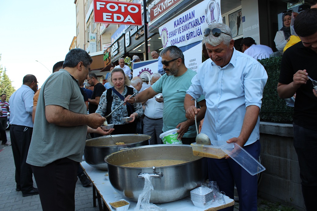 Karaman Esnaf ve Sanatkârlar Odaları Birliği (KESOB), Muharrem ayının manevi atmosferini yaşatmak ve paylaşma kültürünü pekiştirmek amacıyla geleneksel aşure ikramı düzenledi. KESOB hizmet binası önünde gerçekleşen etkinliğe, Birlik Başkanı Selahaddin Pekoğlu, oda başkanları, kamu kurum müdürleri, siyasi parti temsilcileri ve çok sayıda vatandaş katıldı.