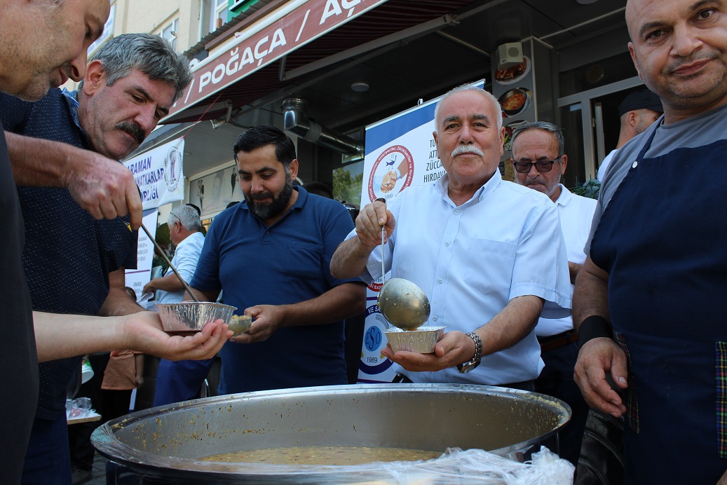 Etkinlikte konuşan Başkan Selahaddin Pekoğlu, Anadolu’nun kadim sofralarındaki çeşitliliğin birlik içinde anlam bulduğunu vurgulayarak, aşurenin farklılıkların uyumunu simgelediğini ifade etti. Muharrem ayının, muhabbeti, sabrı ve dayanışmayı hatırlatan özel bir zaman dilimi olduğuna değinen Pekoğlu, “Paylaşmak sadece lokmayı değil, yüreğimizdeki sevgiyi de çoğaltır. Bizler esnaf teşkilatı olarak, birlikten doğan bereketi korumaya, çoğaltmaya ve gelecek nesillere aktarmaya kararlıyız” dedi.