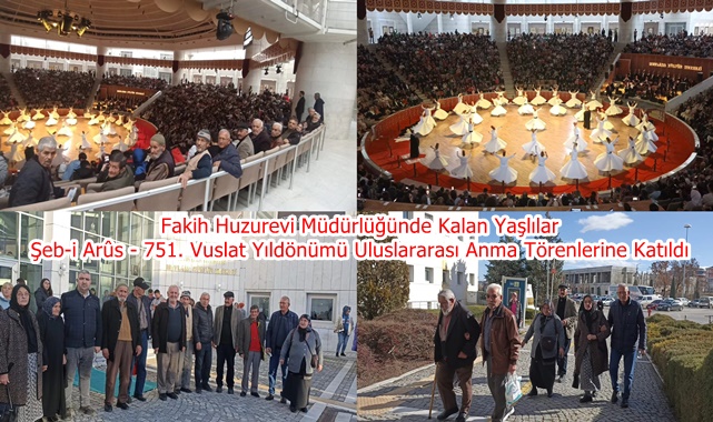 Fakih Huzurevi Müdürlüğünde Kalan Yaşlılar Şeb-i Arûs - 751. Vuslat Yıldönümü Uluslararası Anma Törenlerine KatıldıKaraman Aile ve Sosyal Hizmetler İl Müdürlüğü Sosyal Hesabından:''İl Müdürlüğümüze bağlı Dursun Fakih Huzurevi Müdürlüğünde kalan yaşlılarımız Şeb-i Arûs - 751. Vuslat Yıldönümü Uluslararası Anma Törenlerine katılmak üzere Konya İline düzenlenen geziye katılmıştır. Devlet sanatçısı Ahmet ÖZHAN'ın verdiği konseri izleyen büyüklerimiz semazen gösterisinide izledikten sonra dönüş yoluna geçmiştir. Şeb-i Arûs Törenlerinin manevi ikliminden istifade eden büyüklerimiz gezinin düzenlenmesinde emeği geçenlere teşekkür etmiştir.Fakih Huzurevi Müdürlüğünde Kalan Yaşlılar Şeb-i Arûs - 751. Vuslat Yıldönümü Uluslararası Anma Törenlerine Katıldı'' ifadeleri kullanıldı.