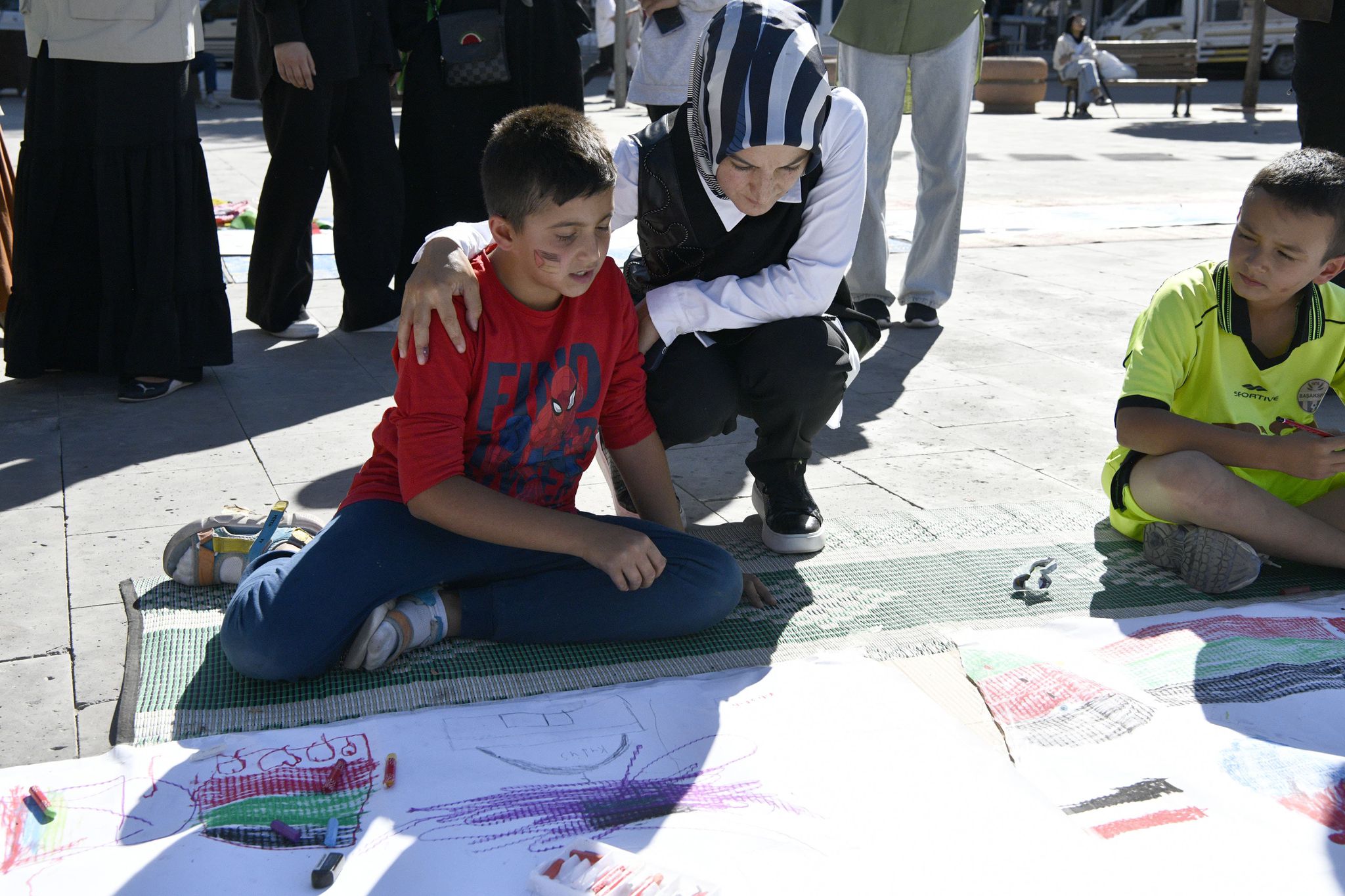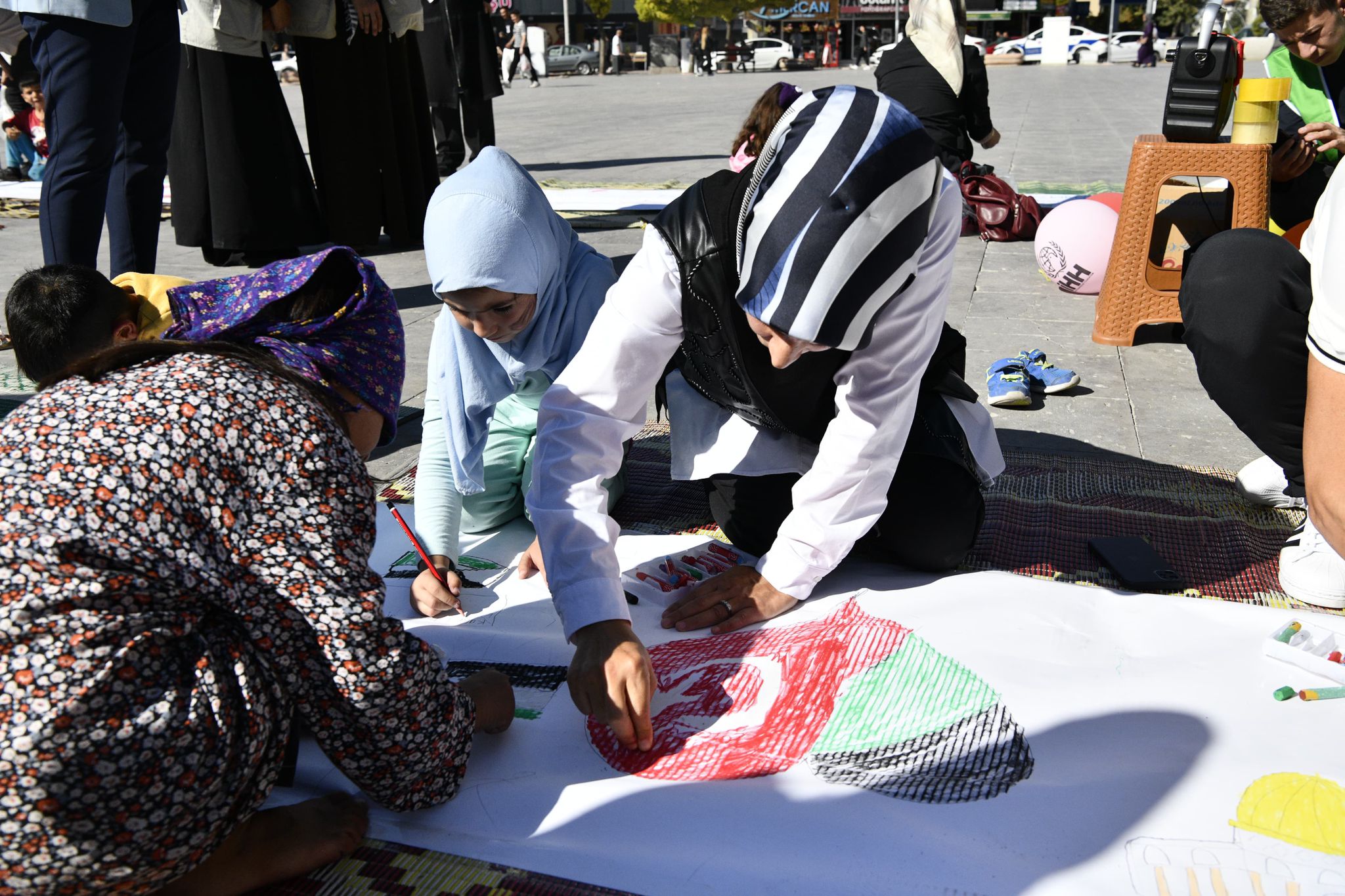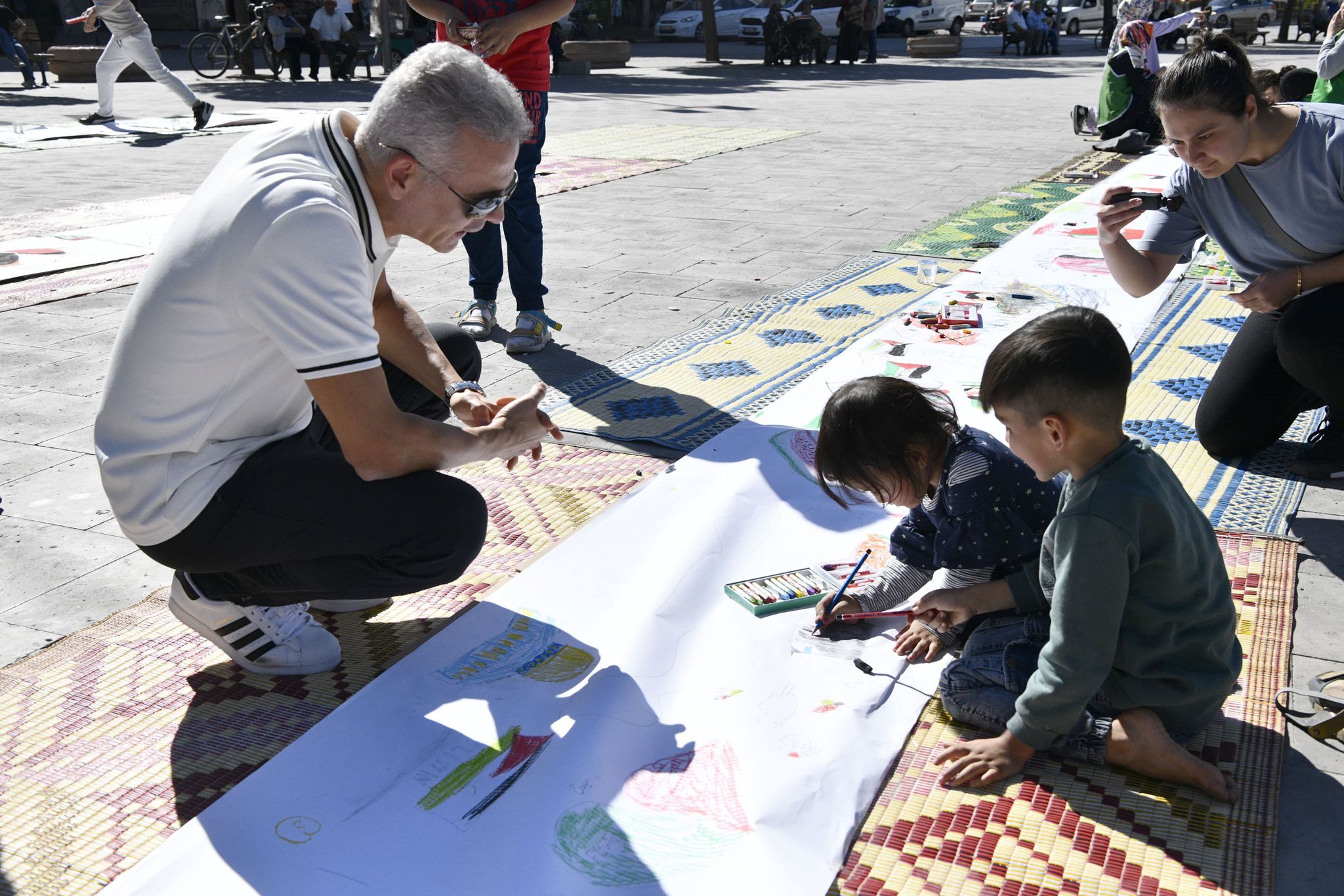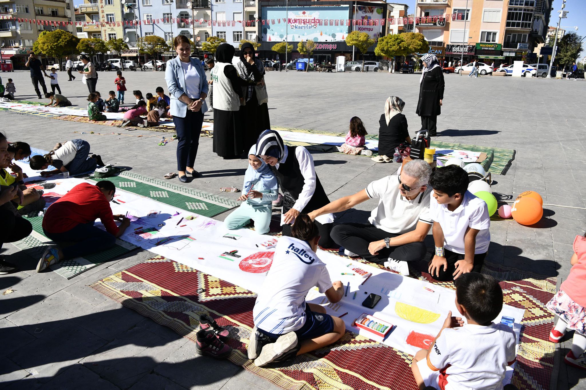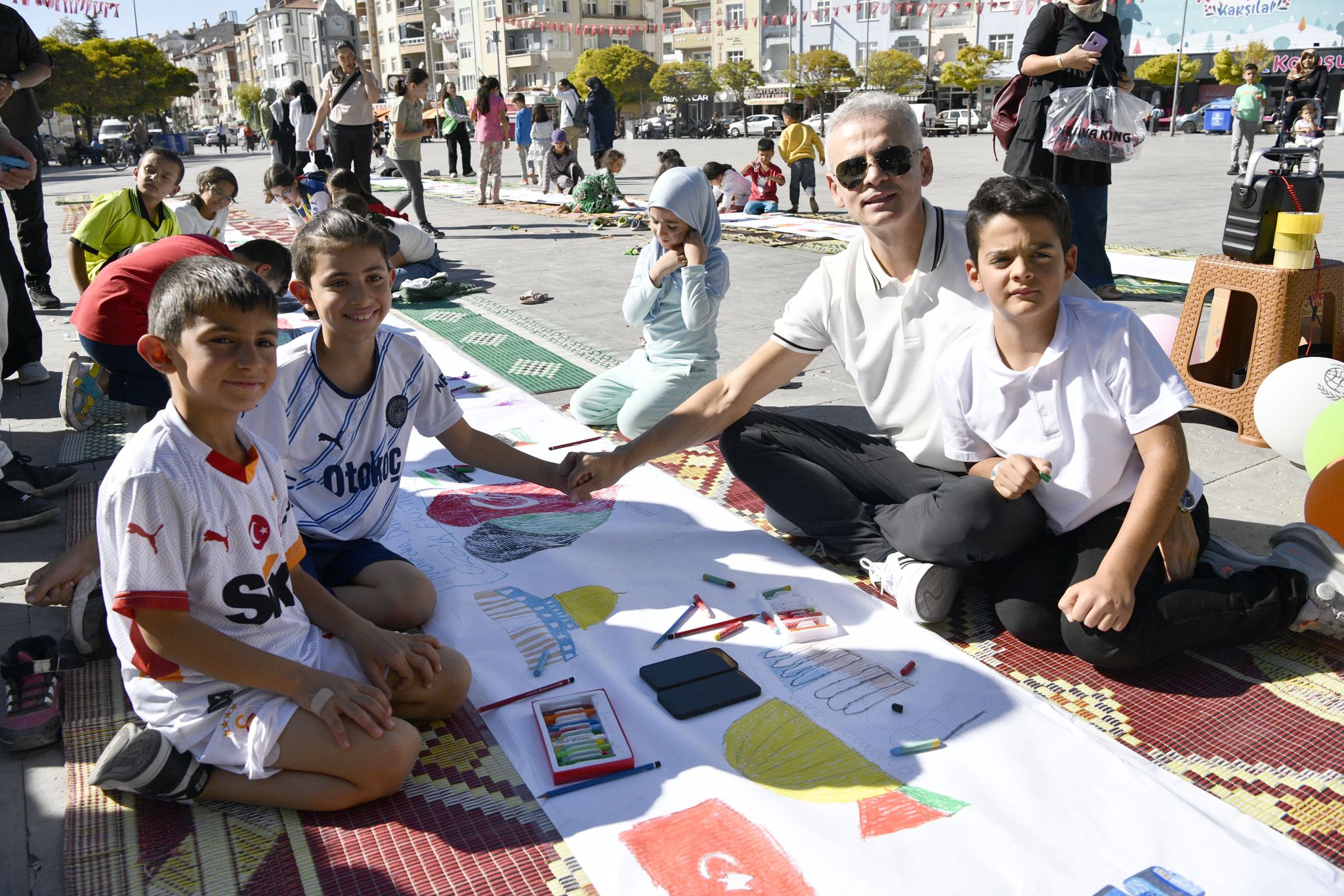 81 ilimizde eş zamanlı olarak gerçekleştirilen ve ilimizde de Aktekke 15 Temmuz Demokrasi meydanındaki etkinliğe katılan vatandaşlar ve çocuklar, yere serilen rulo kağıda Filistin bayrakları çizerek, destek içerikli mesajlarla ve yaptıkları resimlerle Filistinli çocuklar için hayallerini tuvale yansıttılar.