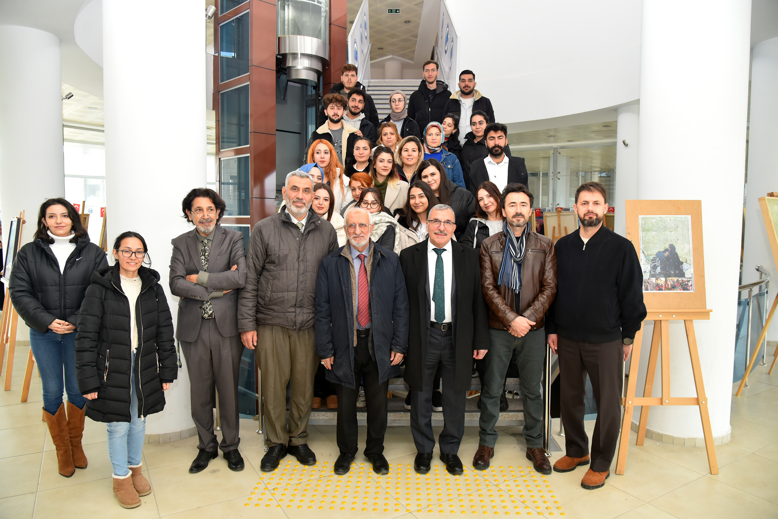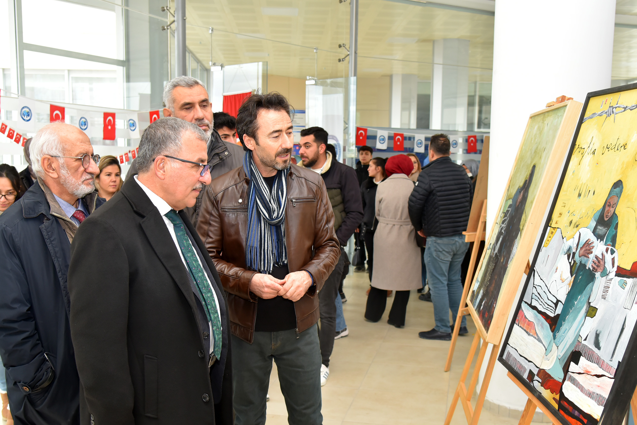 Serginin açılışını gerçekleştiren Rektör Prof. Dr. Mehmet Gavgalı, dünyada her zaman savaş olduğunu ve halen devam ettiğini, mağdur olanların ise hep kadınlar, çocuklar ve yaşlılar olduğunu vurgulayarak, “Barış içinde yaşamak isteyen toplumlar, medeniyiz diyen ama medeniyetten nasibini almamış insanlar yüzünden mağdur oluyor. Allah, Gazze’deki mazlumlara yardım etsin.” dedi.