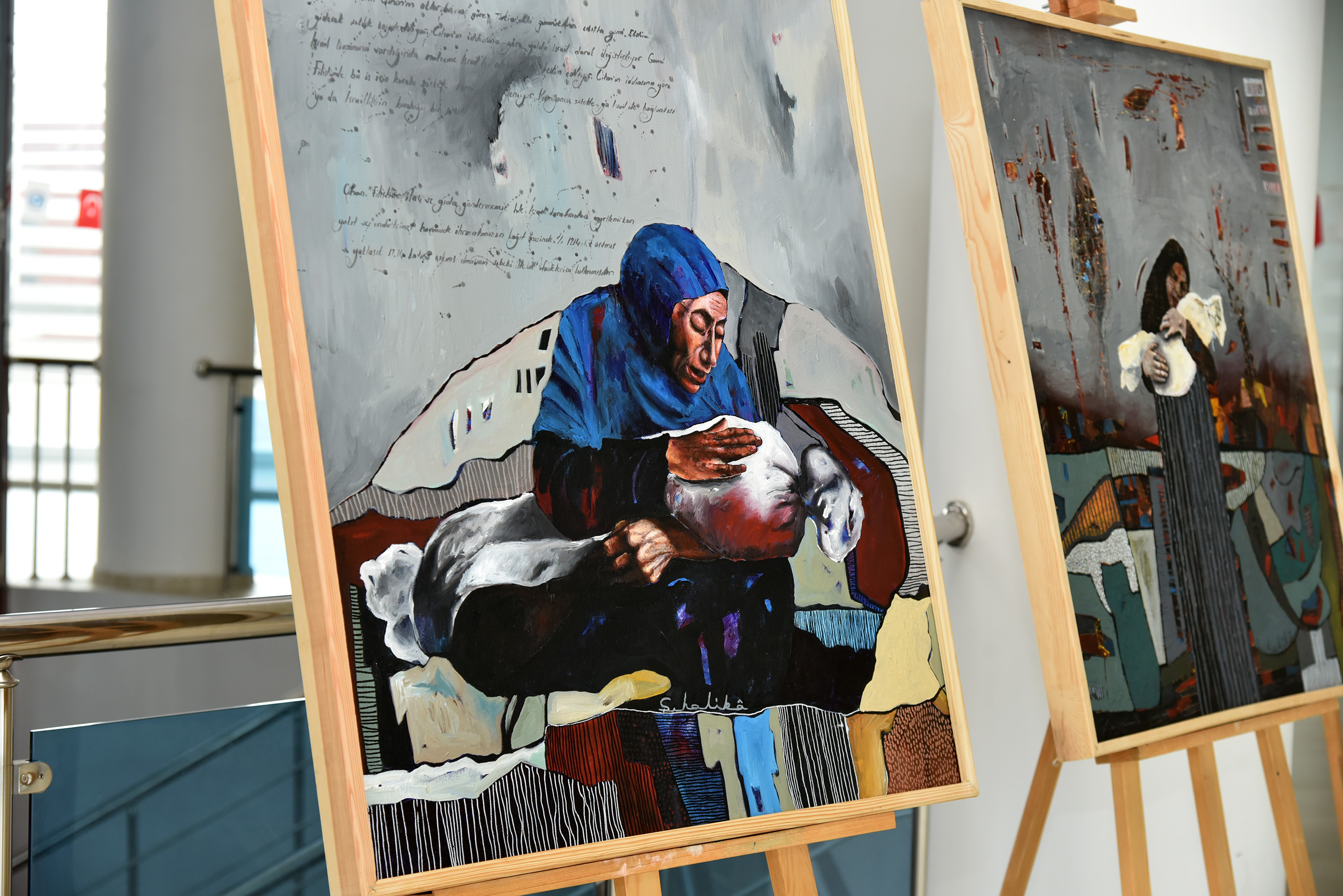Sanat, Tasarım ve Mimarlık Fakültesi Resim Bölümü Öğretim Üyesi Doç. Dr. Murat Aksoy tarafından hazırlanan ve 21 parçadan oluşan sergi, Gazze’de yaşanan dramı kadınlar üzerinden anlatmayı hedefliyor. Tuval üzerine akrilik ve karışık teknikle yapılan çalışmalarda Gazzeli kadınların parçalanmış dünyaları, tuval üzerine bölünmüş yüzeyler olarak yansıyor.