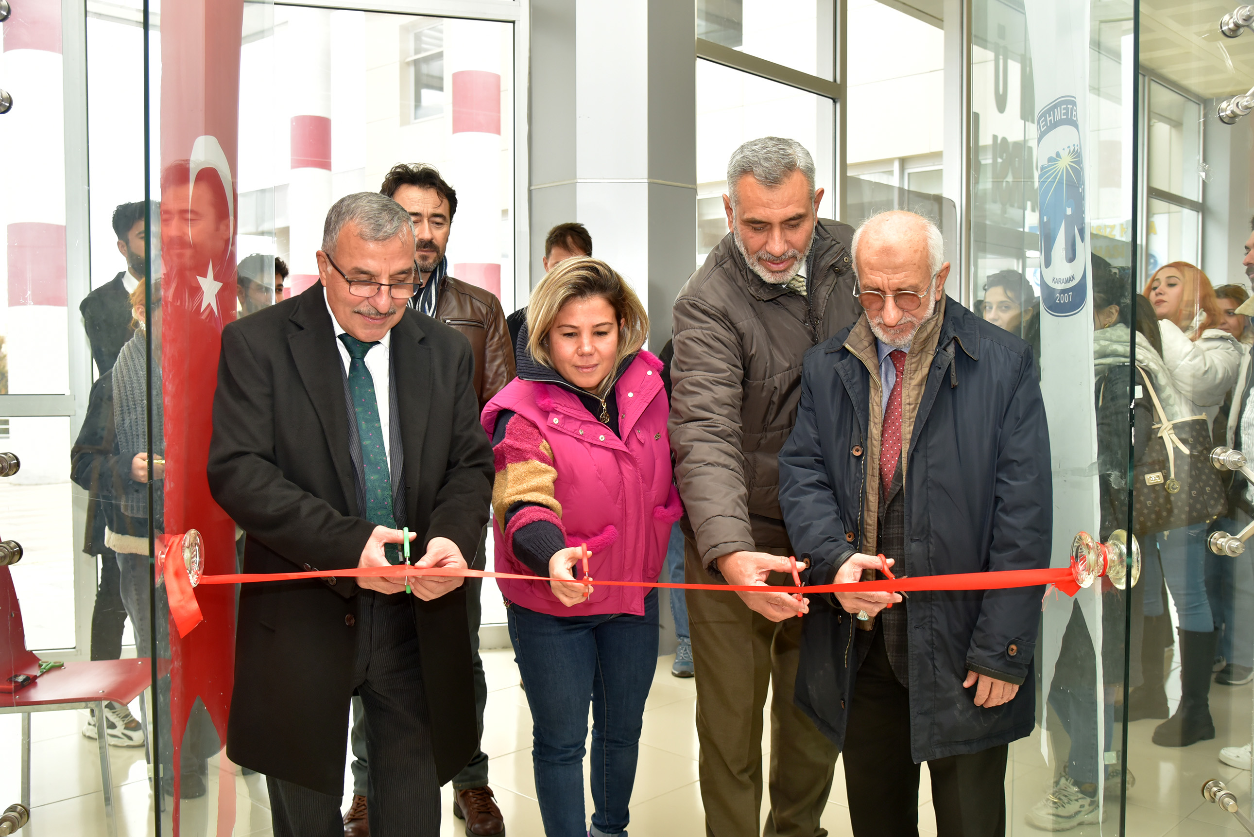 KMÜ Sağlık, Kültür ve Spor Daire Başkanlığı fuaye alanında gerçekleştirilen serginin açılışı Rektör Prof. Dr. Mehmet Gavgalı, Rektör Yardımcısı Prof. Dr. Mahmut Baykan, Sanat, Tasarım ve Mimarlık Fakültesi Dekanı Prof. Dr. Mustafa Diğler tarafından yapıldı.