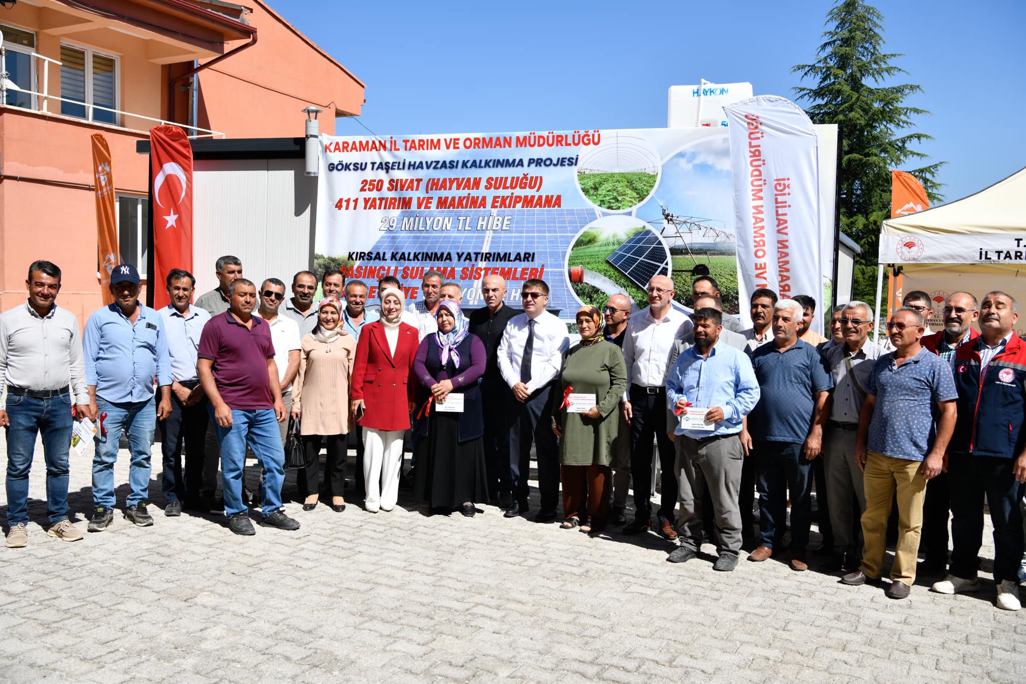 Karaman merkeze bağlı 54 köy ile Sarıveliler, Ermenek ve Başyayla ilçelerinde yürütülen Göksu-Taşeli Havzası Kalkınma Projesi ve Kırsal Kalkınma yatırımları kapsamında hibe almaya hak kazanan üreticilerimize İl Tarım ve Orman Müdürlüğünde düzenlenen makine ekipman dağıtım töreni gerçekleştirildi.