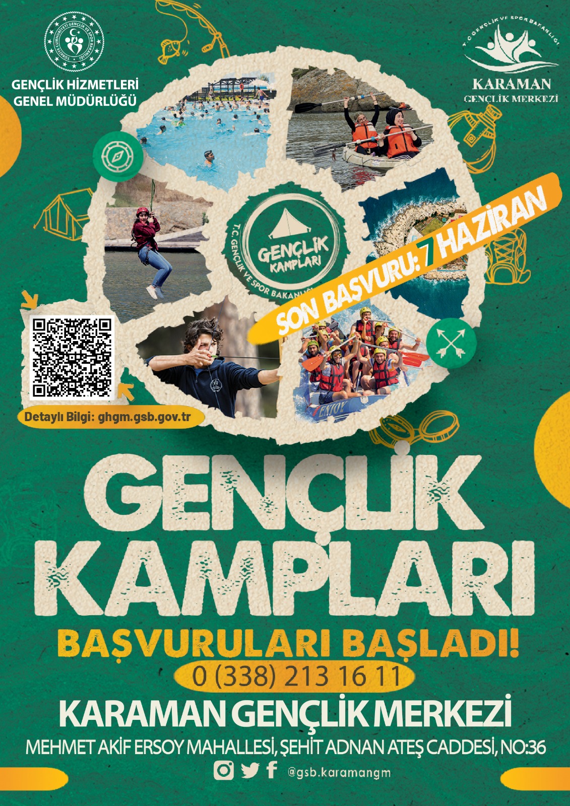 Karaman’dan da kamp başvurusu yapacak vatandaşlar Karaman Gençlik Merkezi’nden başvuru süreciyle ilgili (0338) 213 16 11 iletişim numarasından detaylı bilgi alabilecek.