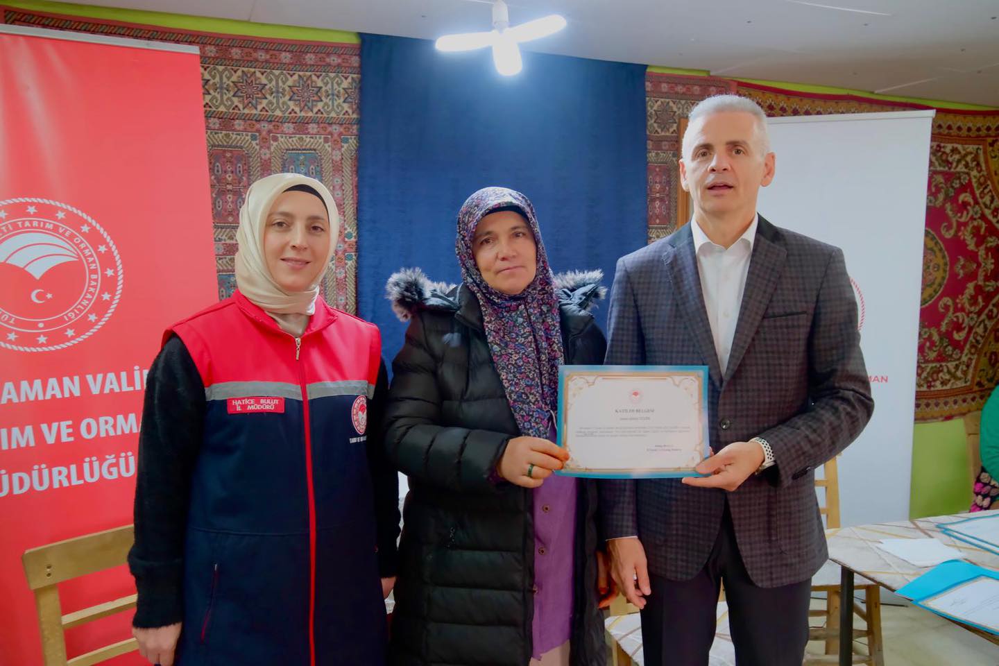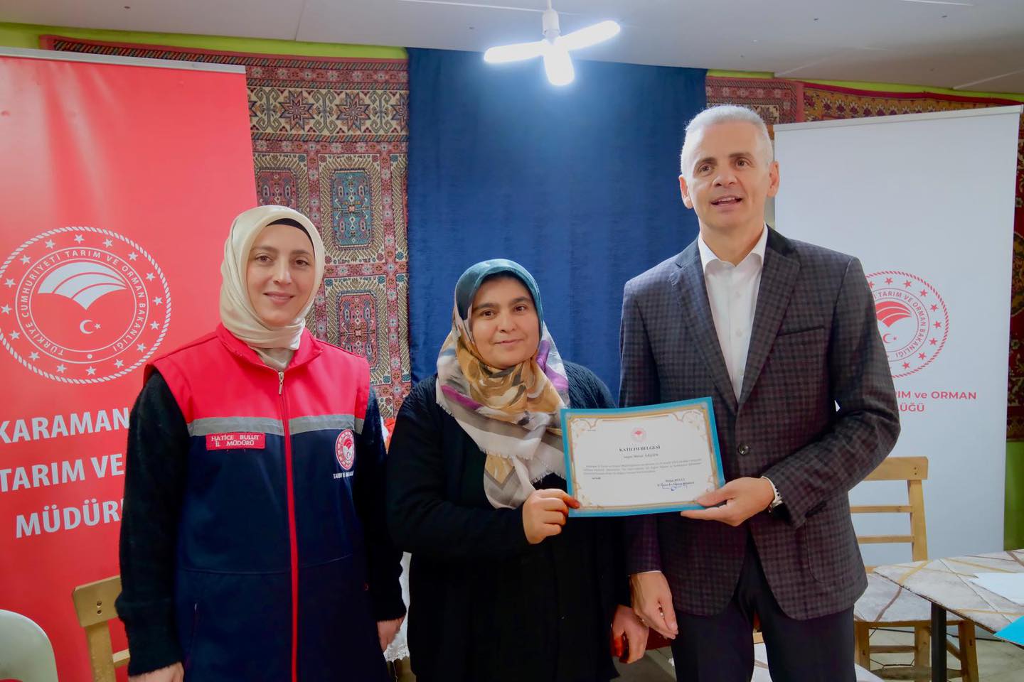 Programa katılan Karaman Valisi Mehmet Fatih Çiçekli, eğitimi başarıyla tamamlayan çiftçilere sertifikalarını takdim etmeden önce katılımcılarla sohbet ederek üretimde hijyenin önemine dikkat çekti.