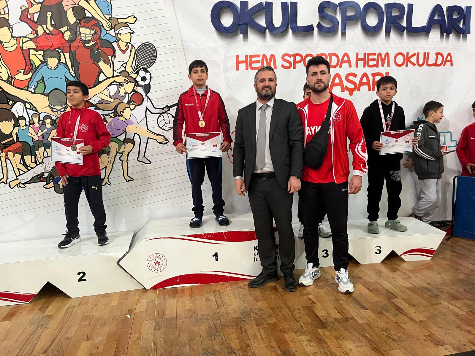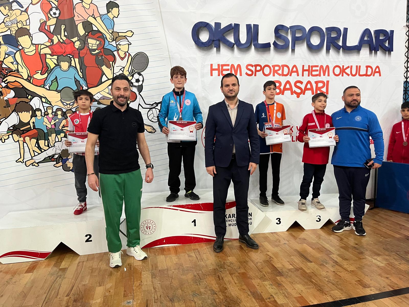 Grekoromen stil 30 kilo erkekler kategorisinde mücadele eden Karaman İbrahim Bey Ortaokulu öğrencisi Eyüpcan Öztürk altın madalya kazanırken, Alpaslan Ortaokulu öğrencisi Eymen Çobanoğlu 38 kiloda ve Karaman Hafız İmam Hatip Ortaokulu öğrencisi Mehmethan Şimşek ise 41 kiloda bronz madalyanın sahibi oldu.