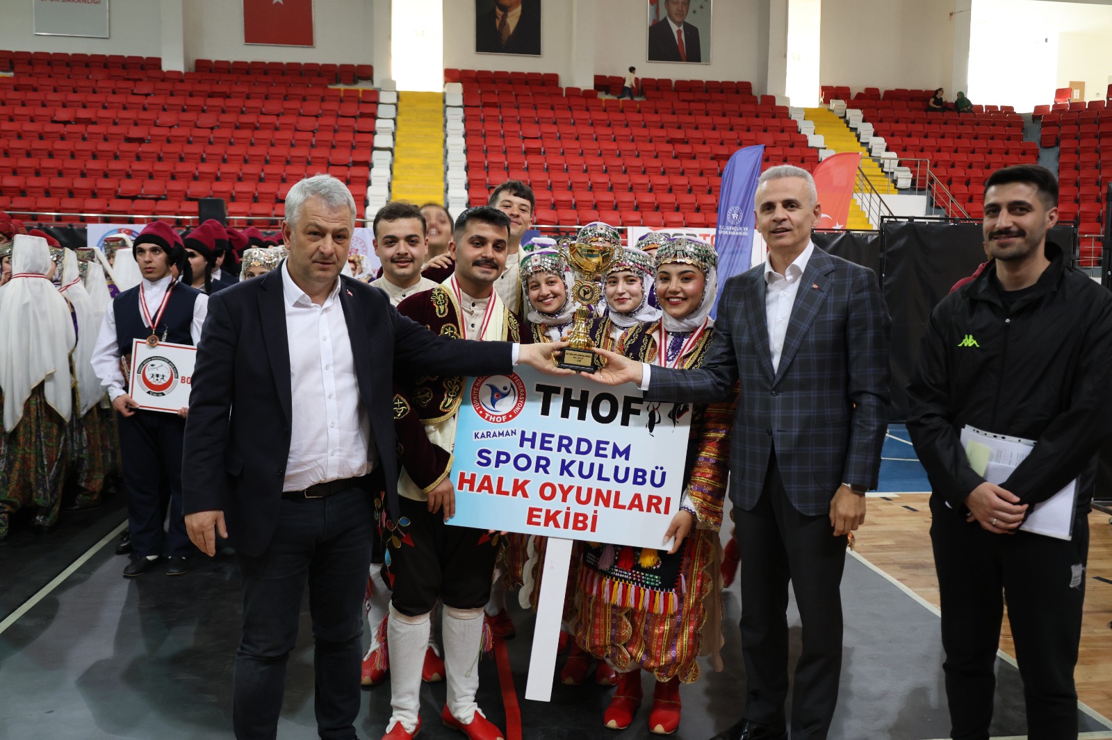 Yarışmalar sonunda dereceye giren takımlara kupa ve madalyaları Karaman Valisi Mehmet Fatih Çiçekli ve eşi Esengül Korkmaz Çiçekli, Karamanoğlu Mehmetbey Üniversitesi Rektörü Prof. Dr. Mehmet Gavgalı, Türkiye Halk Oyunları Federasyonu Başkanı Hüseyin Güler, Ilgın Belediye Başkanı Ömer Apil, Gençlik ve Spor İl Müdürü Mustafa Karadeniz, İl Genel Meclis Başkanı Tamer Yıldızbaş, İl Özel İdaresi Genel Sekreteri Ali Yener Terlemez, Spor Şube Müdürü Mehmet Baskın, THOF Disiplin Kurulu Üyesi Muhammet Aytekin, THOF İç Anadolu Bölge Sorumlusu Zuhal Çınar, THOF Müzik Kurulu Üyesi Muhammet Koç ve THOF Karaman il temsilcisi Mehmet Onurhan Gücüş tarafından verildi.
