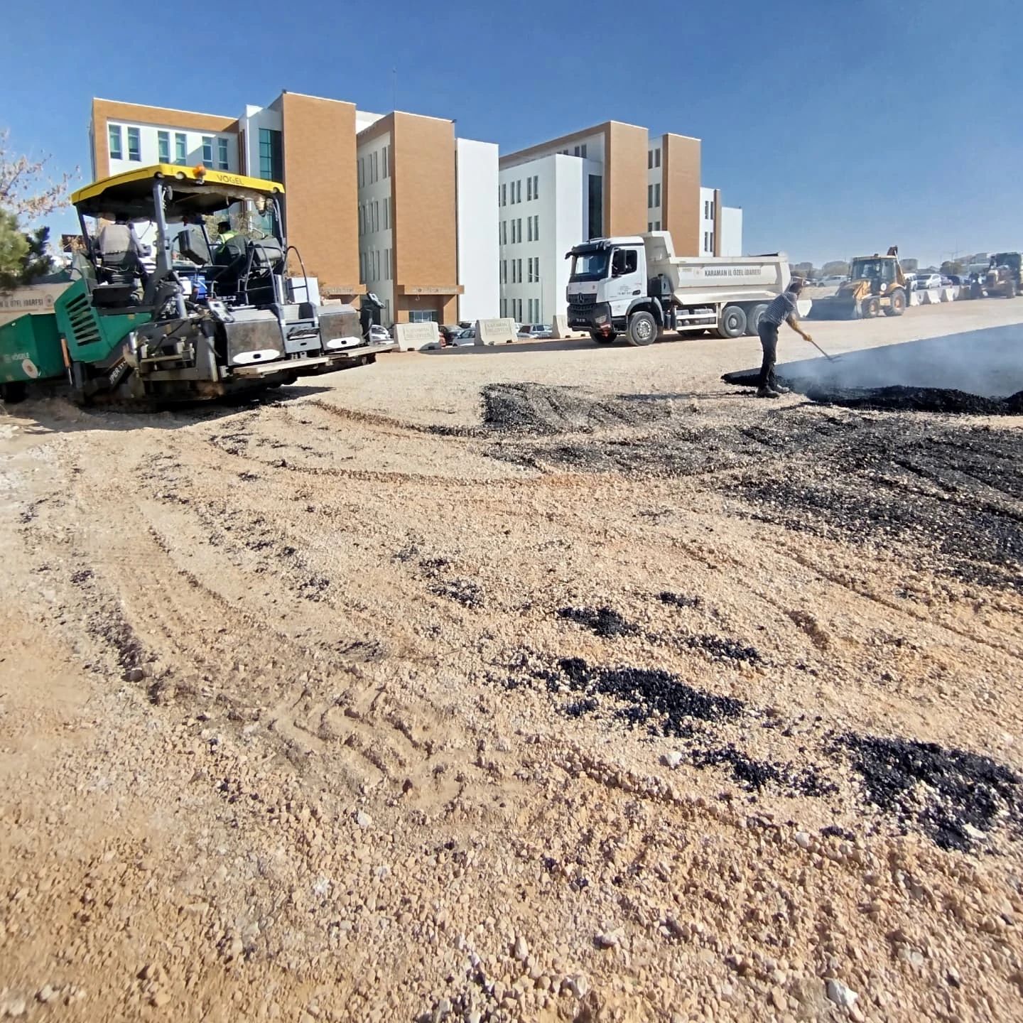 Karaman Eğitim ve Araştırma Hastanesi yerleşim alanı içerisinde otoparka uygun bir alanın otoparka dönüştürülmesi için yapılan çalışmalarda asfaltlama sürecine geçildi.