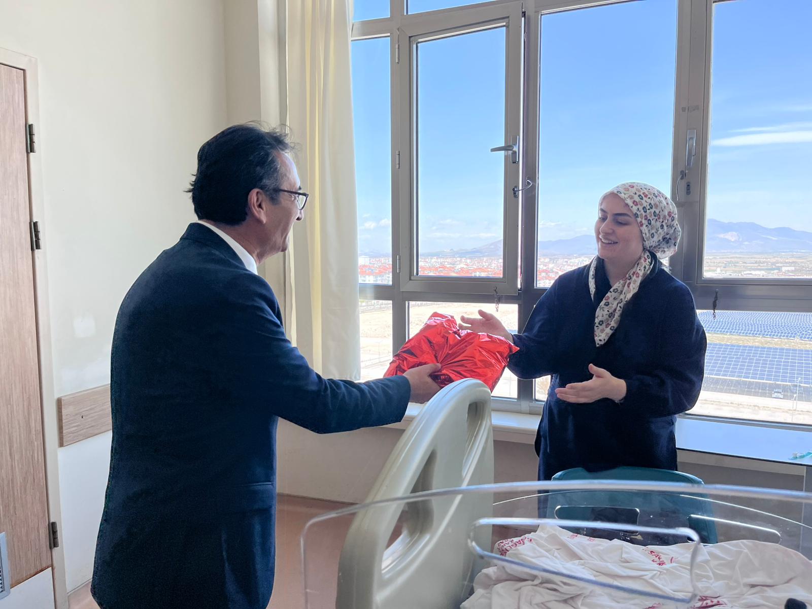 Ziyaret sırasında çocukların sağlık durumları hakkında ailelerinden bilgi alınırken, geçmiş olsun dilekleri iletildi. Miniklere çeşitli oyuncaklar hediye edilerek bayramın neşesi hastane ortamına taşındı.