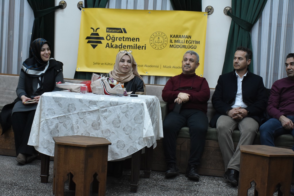 Karaman İl Milli Eğitim Müdürlüğü, öğretmenler için kültürel ve sanatsal etkinlikler düzenlemeye devam ediyor. Bu kapsamda, Edebiyat Akademisi etkinliklerinden biri olan “Hayalden Hakikate Okuma Kültürü” başlıklı program, Gazi Kültür Sanat Merkezi’nde gerçekleştirildi. Etkinliğin konuğu, Eğitimci ve Yazar Nilüfer Zontul Aktaş oldu.