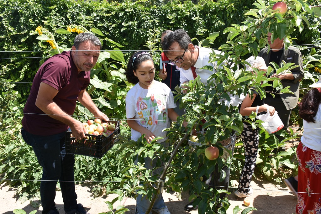 Günün ilk ışıklarıyla birlikte, minik ellerin heyecanı okul bahçesinde hissediliyordu. Hasat zamanı gelmişti. İl Millî Eğitim Müdürü Mehmet Çalışkan, Tarım ve Orman İl Müdürü Hatice Bulut ile İl Millî Eğitim Müdür Yardımcısı Abdurrahman Kurt, öğrencilerin mutluluğuna ortak olmak adına onlarla birlikte elma topladı.